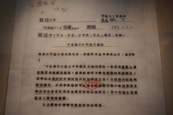 同意购回王献之《中秋帖》及王珣《伯远帖》。惟须派负责人员及识者前往鉴别真伪,并须经过我方现在香港的可靠银行,查明物主郭昭俊有无讹骗或高抬押价之事,以保证两帖顺利购回。所需价款确数,可由我方在香港银行与中南胡惠春及物主郭昭俊当面商定,并电京得批准后垫付,待《中秋》及《伯远》运入国境后拨还。以上处理手续,请与薄、南两同志接洽。