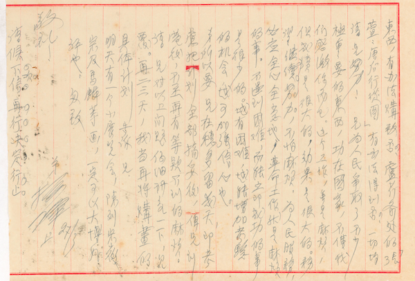 此批“郑振铎等抢救流散香港文物往来信札”包括1952年至1958年间,郑振铎先生等与“香港秘密收购文物小组”成员之间的往来信件、电报存根等共计166页,涉及收购小组成立、文物收购原则、真伪鉴定、资金筹措等多方面内容。