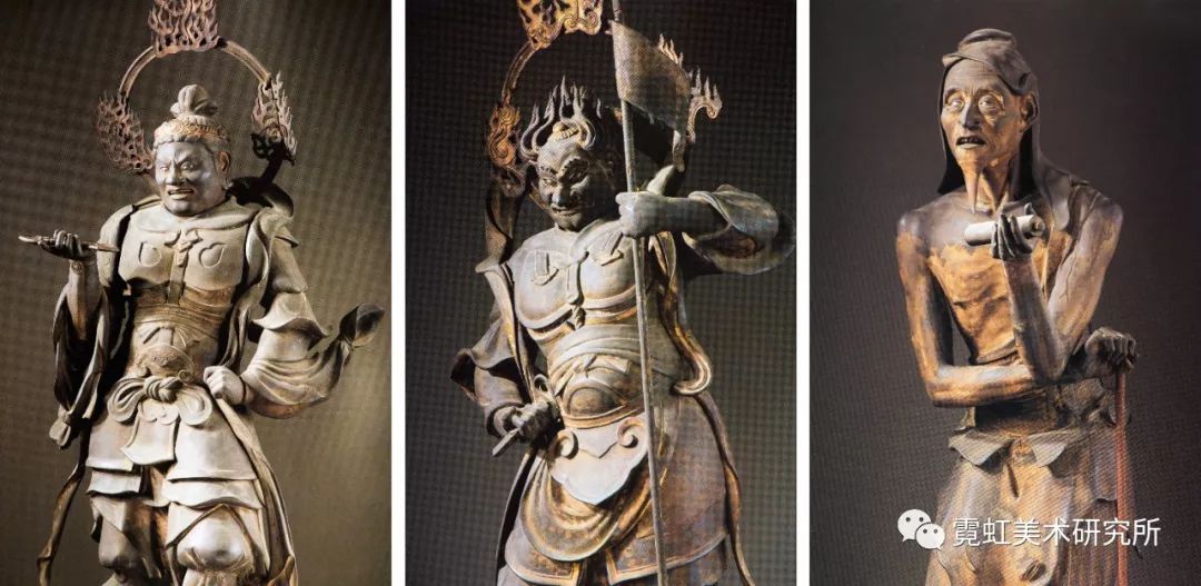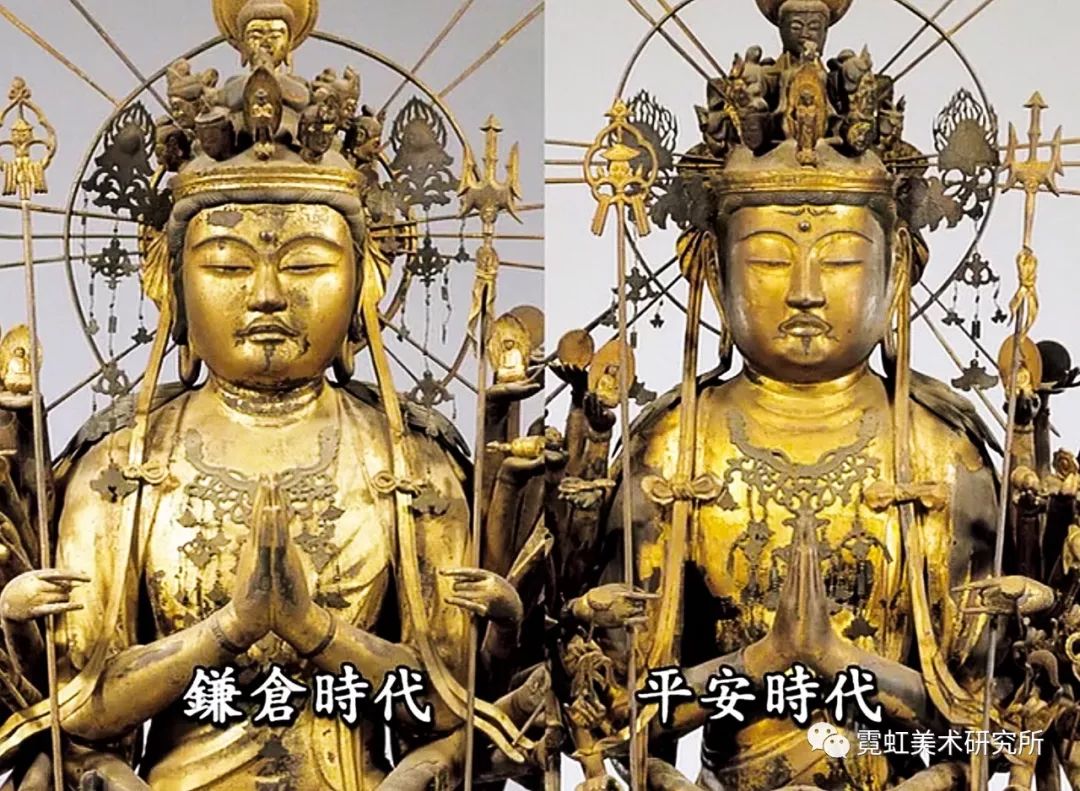 对比火灾前后的作品,我们可以发现平安时代的千手观音像比镰仓时代重做的佛像样貌从容,可以看出安稳的面相。湛庆晚期的作品中已经减少了运庆的作品中的动感,佛像内在的张力也在消退,但仍然可以找到写实主义的身影。
