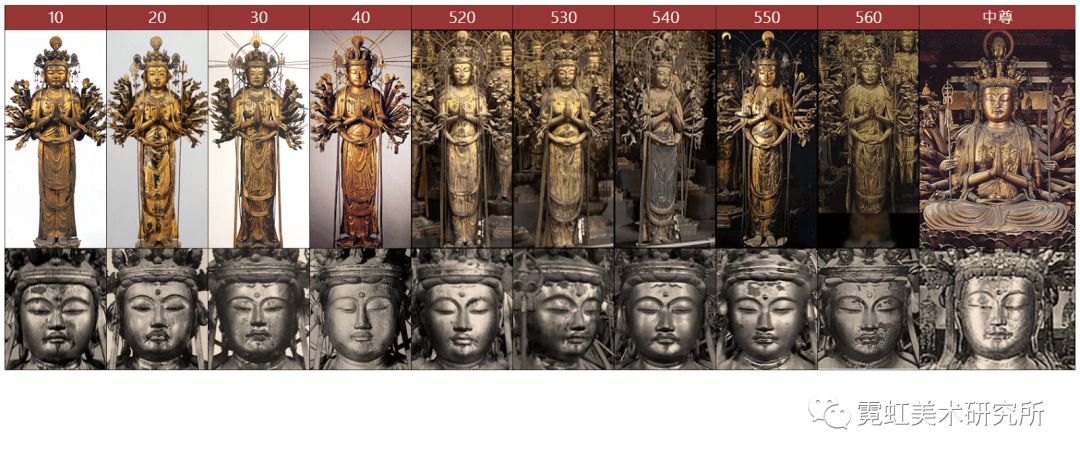 因为1000尊千手观音立像由多名顶级佛师合作完成,因此每尊菩萨像的面相都有微妙的不同,即便是湛庆自己完成的作品,也可以看出明显的区别。