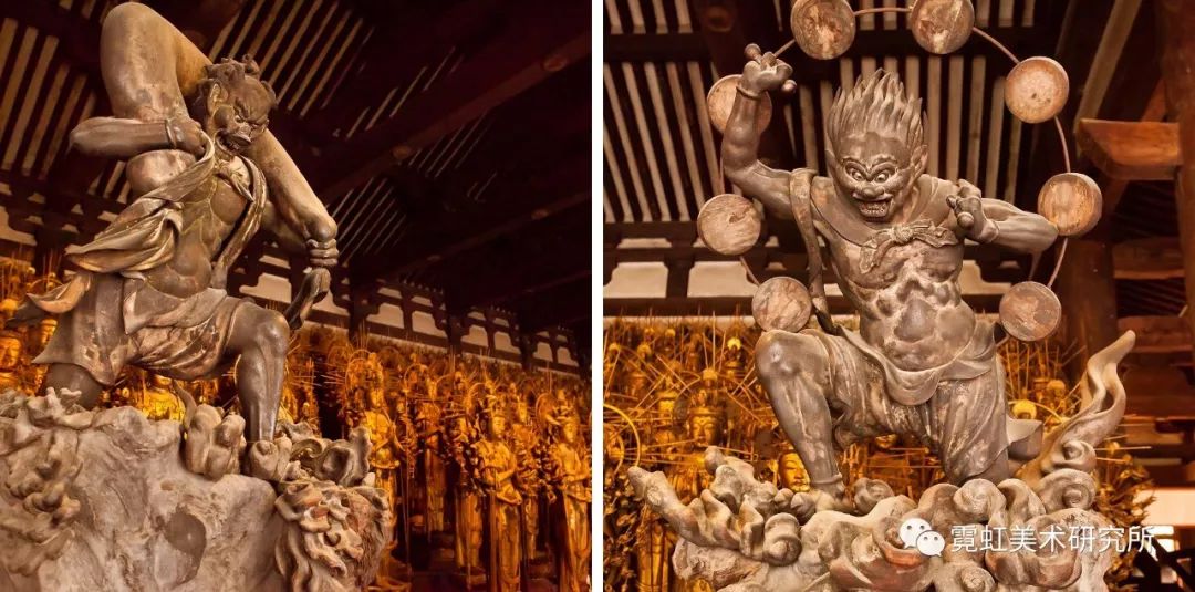 看到风神、雷神的形象,你肯定会联想到 俵屋宗达所绘的《风神雷神图》,事实上, 俵屋宗达的画作的确受到了这两尊造像的影响。( 更多关于风神雷神的故事可以点击了解更多 )。