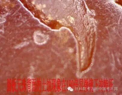 图十 圆板天珠上白色花纹微凹于珠体其它部位的现象微距图