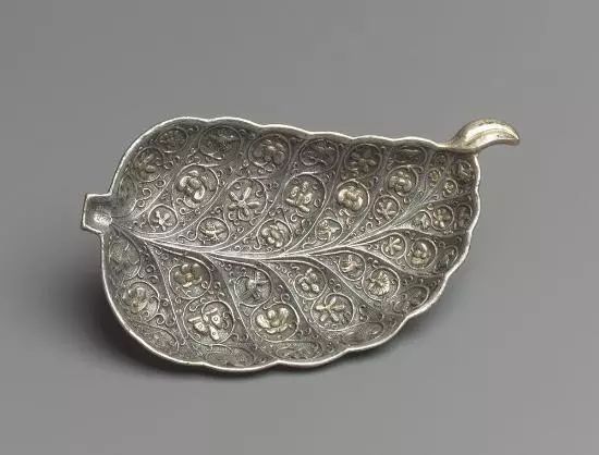 唐 鎏金叶形银盘