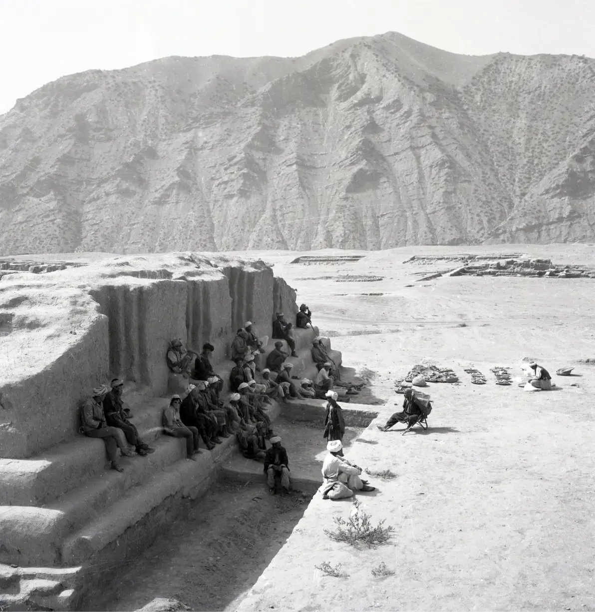 拍摄于1968年,法国考古学家与当地的发掘工作者倚靠在神庙遗址上休息,还有人在清点发掘出的各种残片