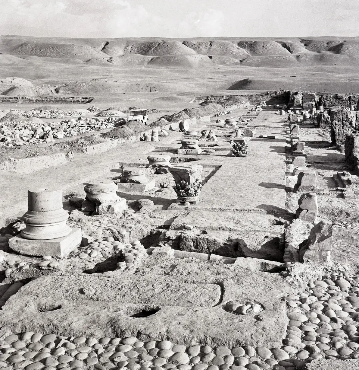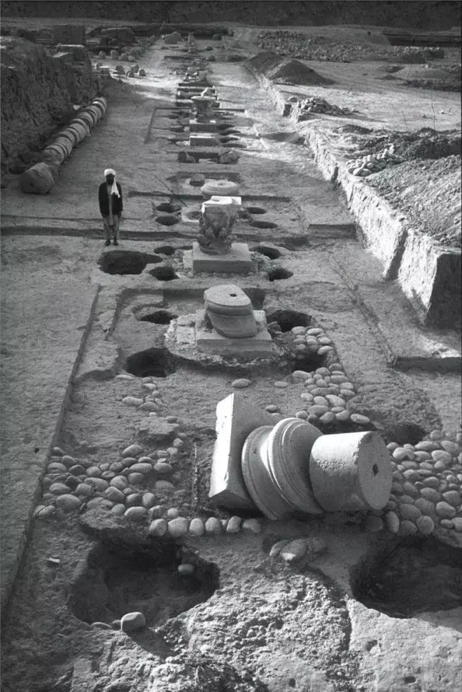 1961 年,查希尔国王 (King Zahir Shah) 在阿富汗北部河岸狩猎时,阿伊哈努姆 (Aï Khanoum) 村民向他展示了一块雕刻的石头。他通知了当时的法国驻阿富汗考古团队-主任丹尼尔·斯伦贝谢 (Daniel Schlumberger),他发现这件作品是科林斯式柱头。因此,1964 年,斯伦贝谢领导了该地点的首次发掘工作,这将证实这是一座希腊王城,古罗马史书中的远方希腊化城市,被正式的发掘。