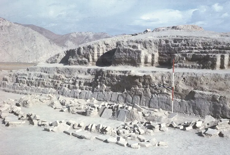 考古学家只能对另外两个宗教建筑进行肤浅的研究。北墙外的寺庙继承了原址上更简单、更小的结构,在建筑上有点类似于宏伟的中央圣殿,墙壁上有壁龛,但它的特色不是邪教图像,而是三个礼拜堂。卫城的讲台面向东方,有人认为它被用作崇拜旭日的祭祀平台,因为该地区也发现了类似的平台。