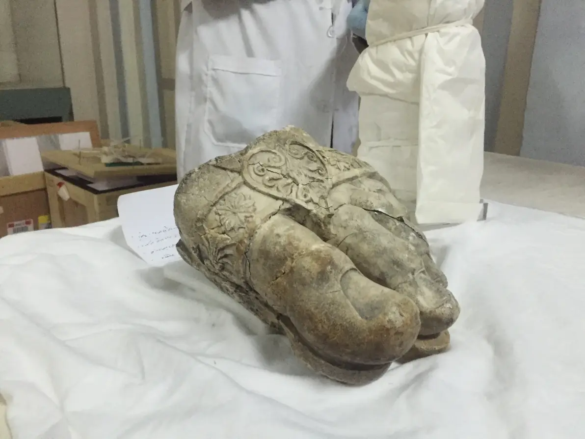 从神庙遗址出土的宙斯像脚部残块,可以看出原像多么巨大以及精湛的工艺 藏于阿富汗国家博物馆