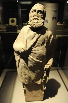 体育馆同时发掘出土的男性雕像 可能是一名哲学家 在希腊城市雕像是城市生活不可缺少的一部分 阿富汗国家博物馆