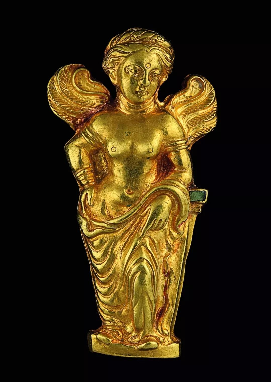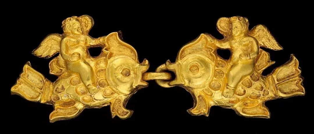 ▲骑海豚的丘比特扣饰 蒂拉丘地2号墓