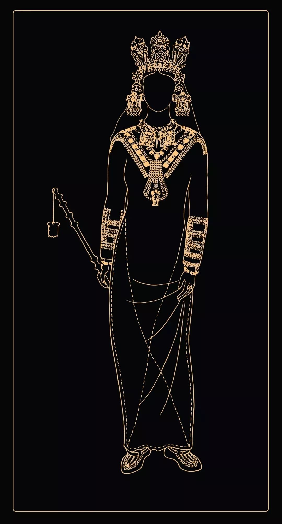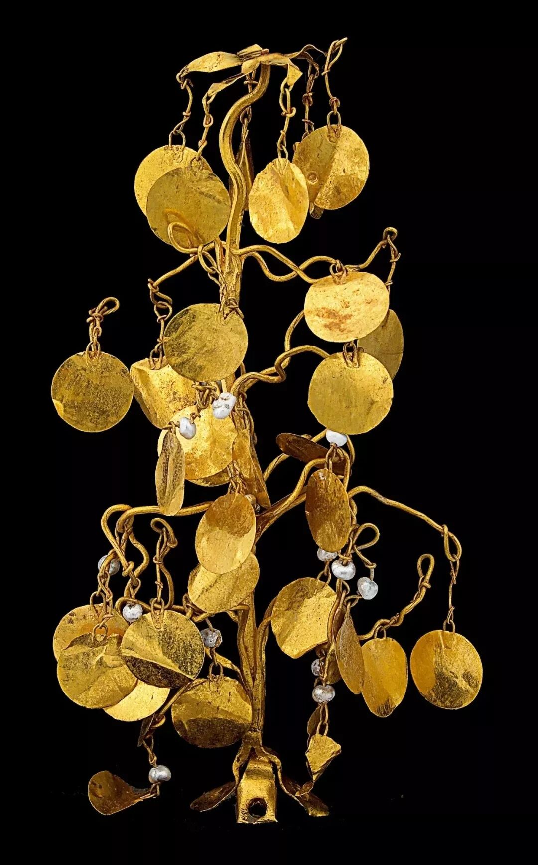作为等级最高的女性墓主,在其生前使用的黄金饰品中,隐藏了更多与中国有关的文化因素。