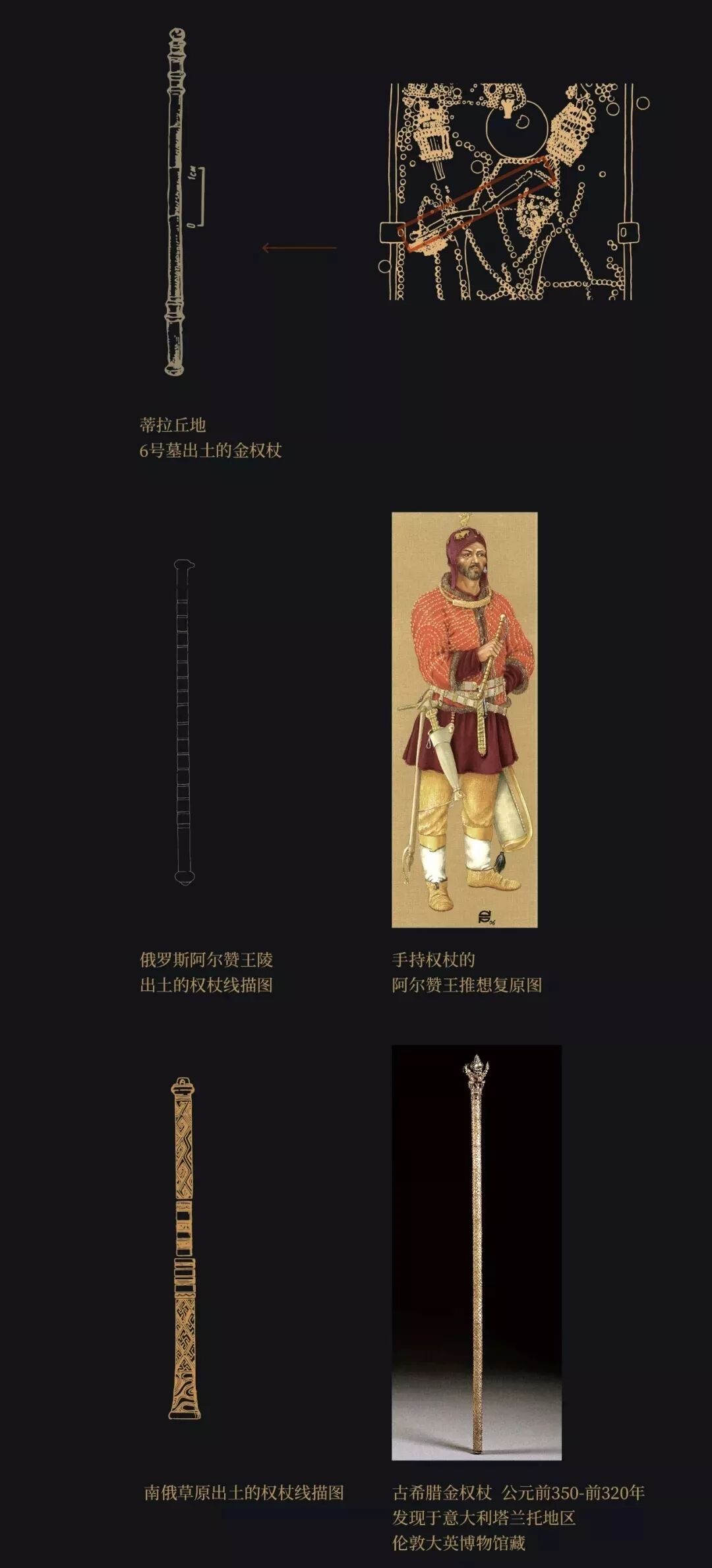 事实上蒂拉丘地6号墓,以及欧亚草原、乃至古希腊,均发现了中空、有“节”的神杖或权杖。在早期中国,竹子亦具有隐秘的象征意义,可作为神杖,甚至汉武帝在甘泉宫祭天的主要场所,也是在竹子建造的“竹宫”里——故而有“以竹为宫,天子居中”之说。而张骞完成首次出访西域的任务回到长安后,声称在大夏见到了经今中国云南、缅甸和印度运来的产自四川的筇竹杖和蜀布。筇竹之所以成为国际贸易的货物,当不是简单的经济行为,而是可能和信仰有关。