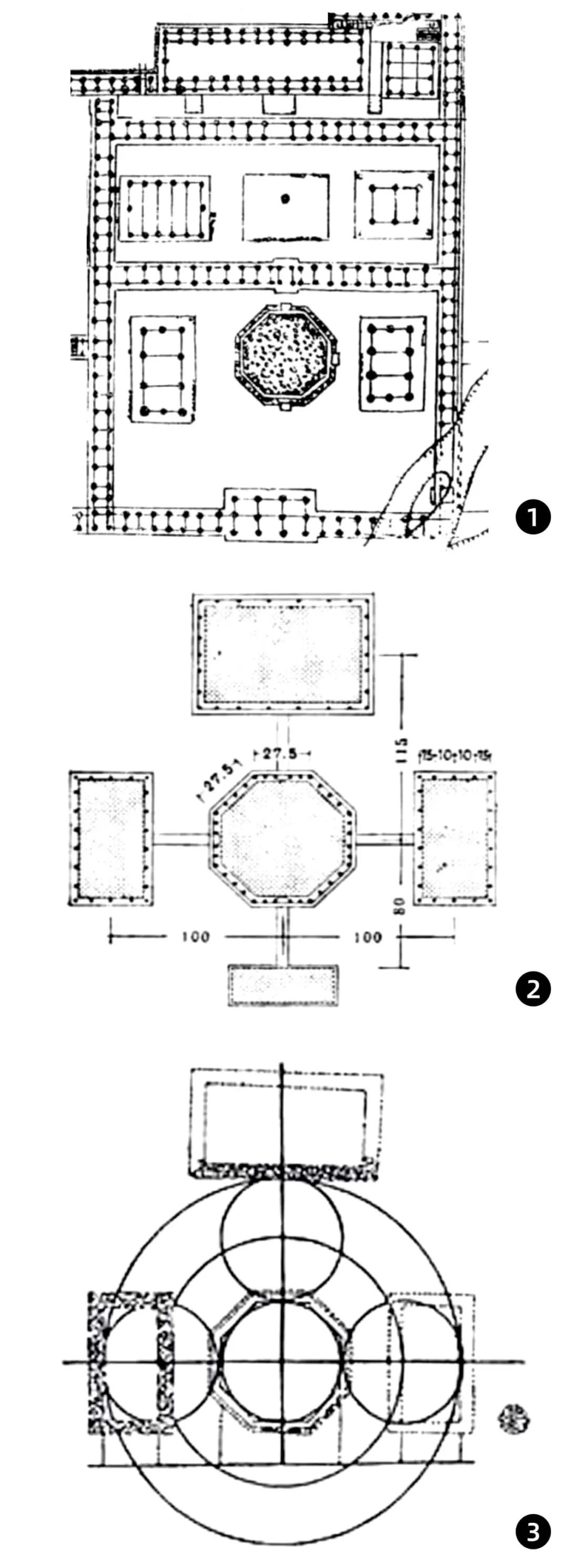 1.南大门;2.中门;3.塔