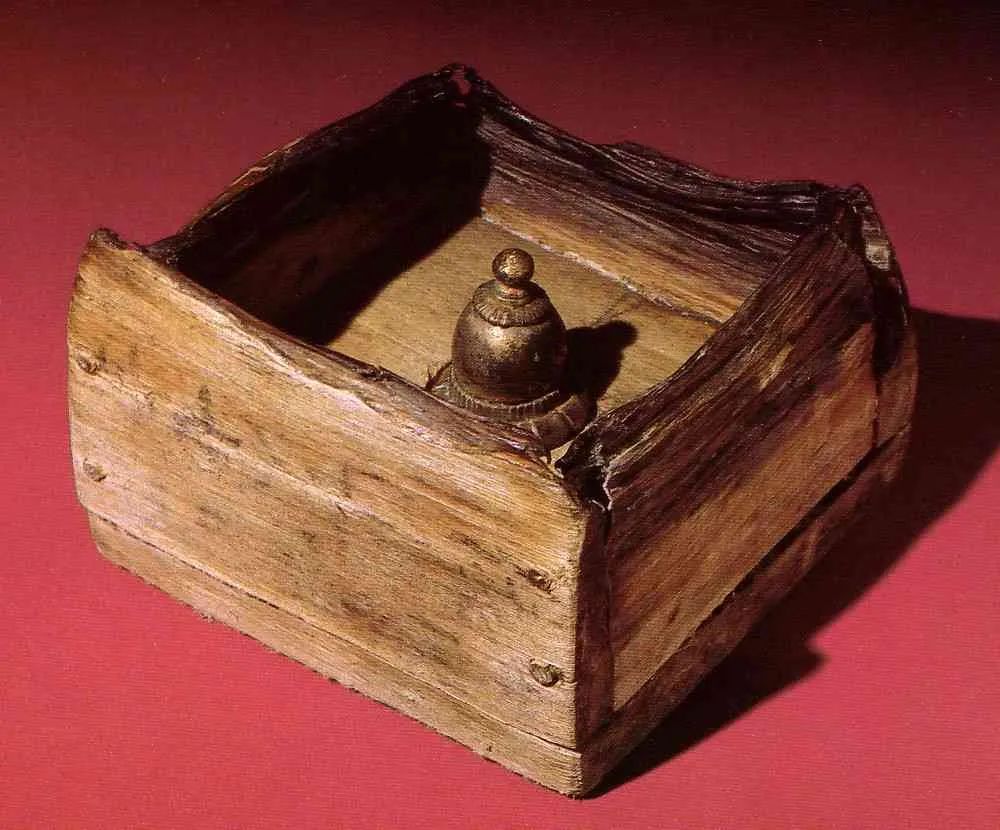 从上图中可知,心础深埋地下,中央开有方形小槽,内部出土舍利庄严具及其它埋葬物。舍利容器大小尺寸与小槽相同。不过经过鉴定,出土物非飞鸟时代原物,而是佛塔在建久七年烧毁之后在镰仓时代重新供奉之物。