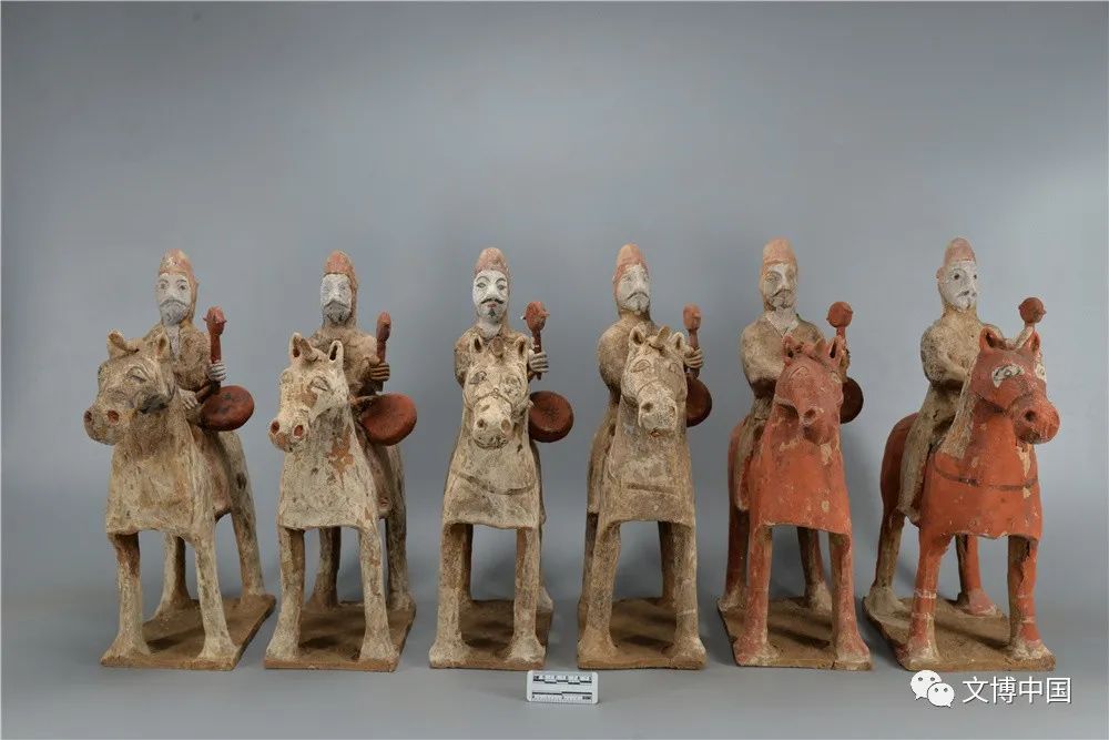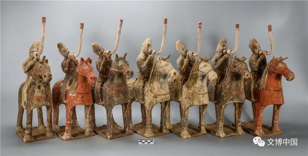 骑马击鼓俑组合、骑马吹角俑组合