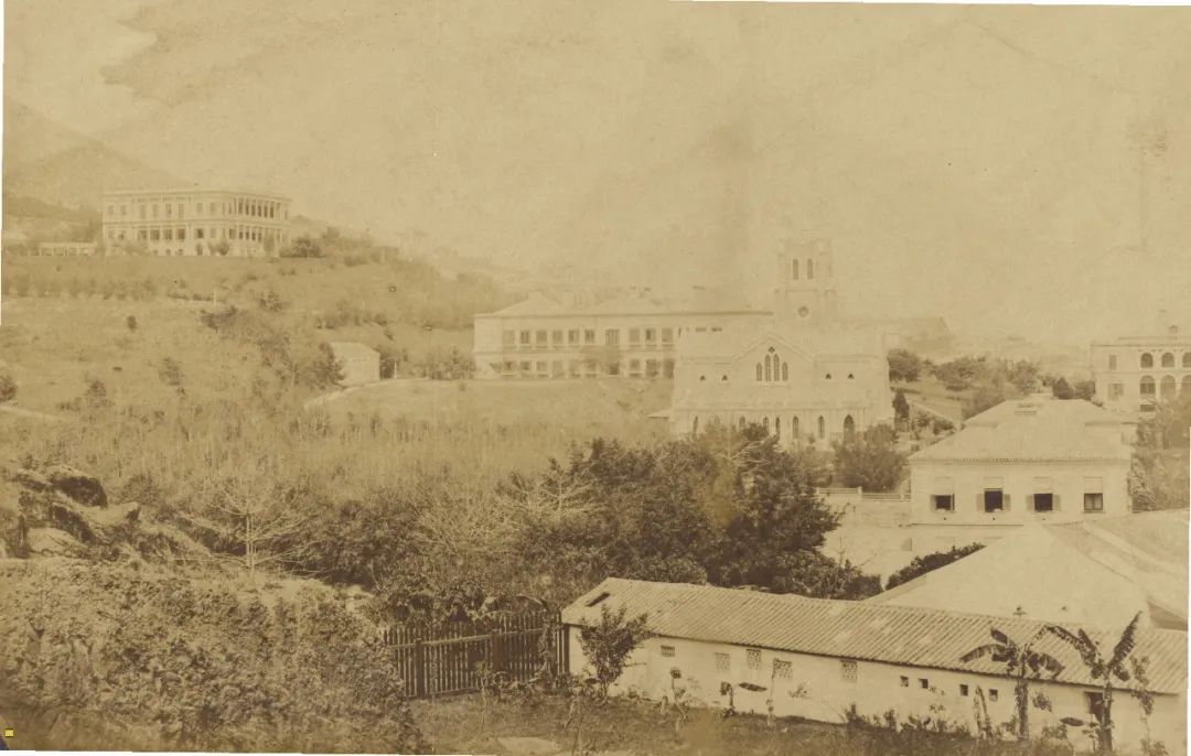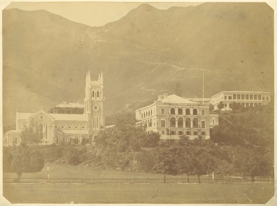 View in Hong-Kong - The Episcopal Church - The Goverment Palace and Hurd & Co.'s American Mercantile House -,1860