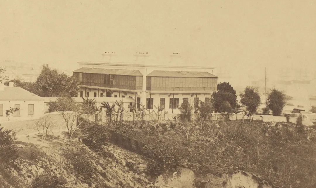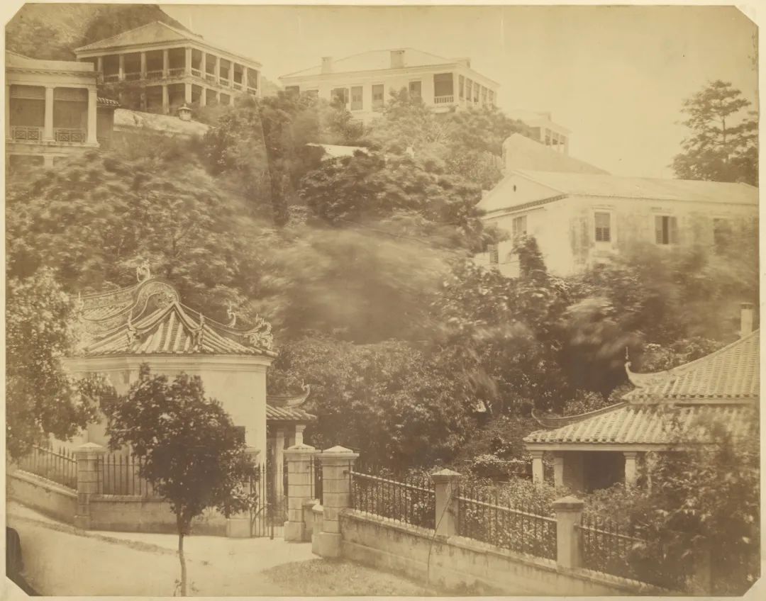 View in Hong-Kong - Bungalow of French Admiral in Foreground,1860