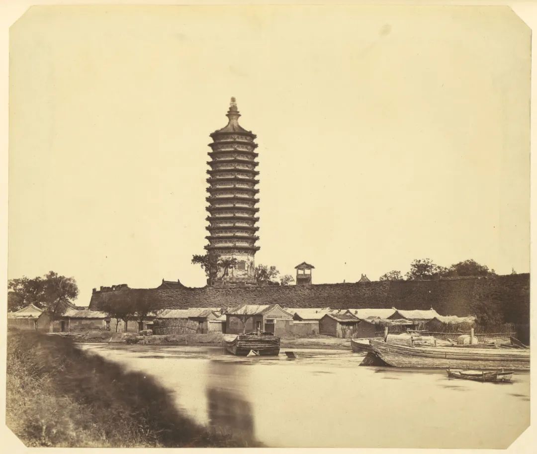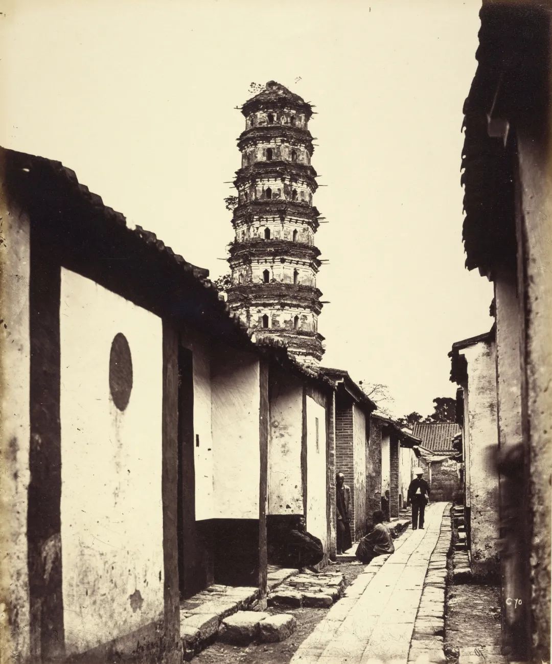 Nine-storied Pagoda and Tartar Street, Canton,negative April 1860