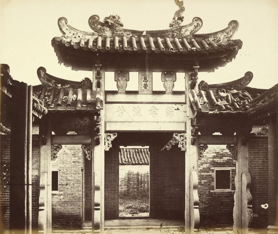 Entrance of the Five Genii Temple, Canton, China,April 1860