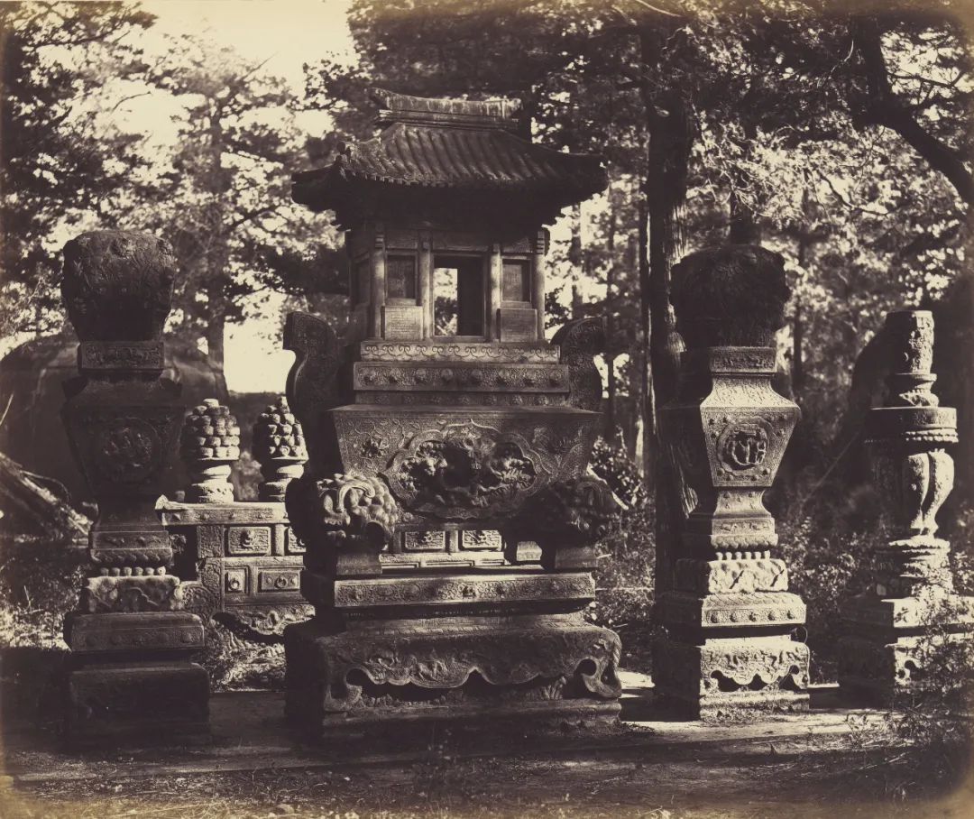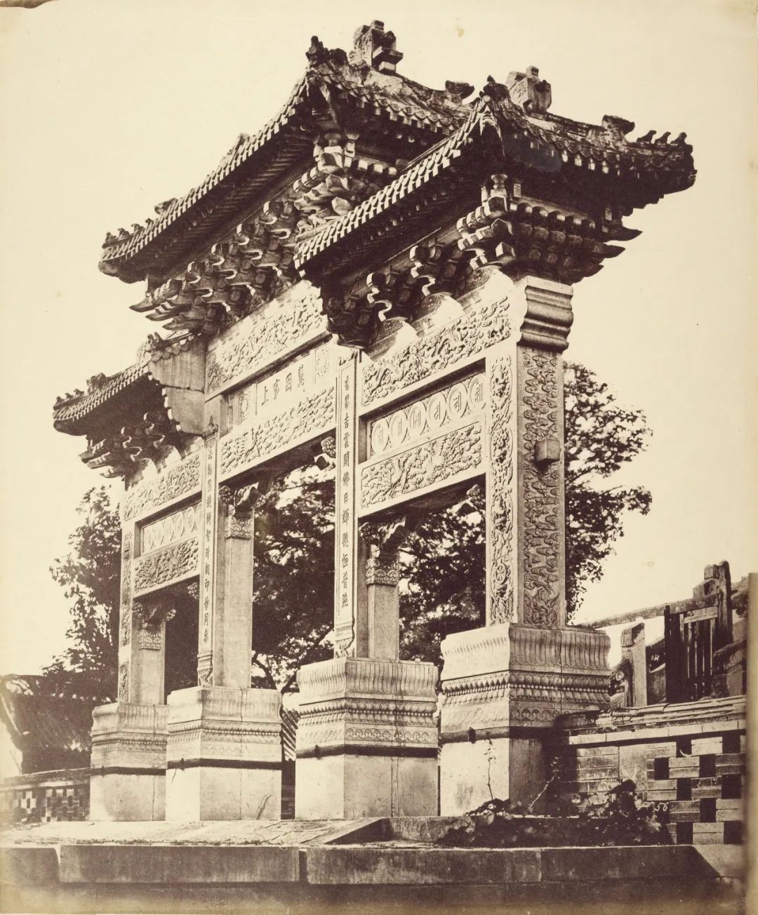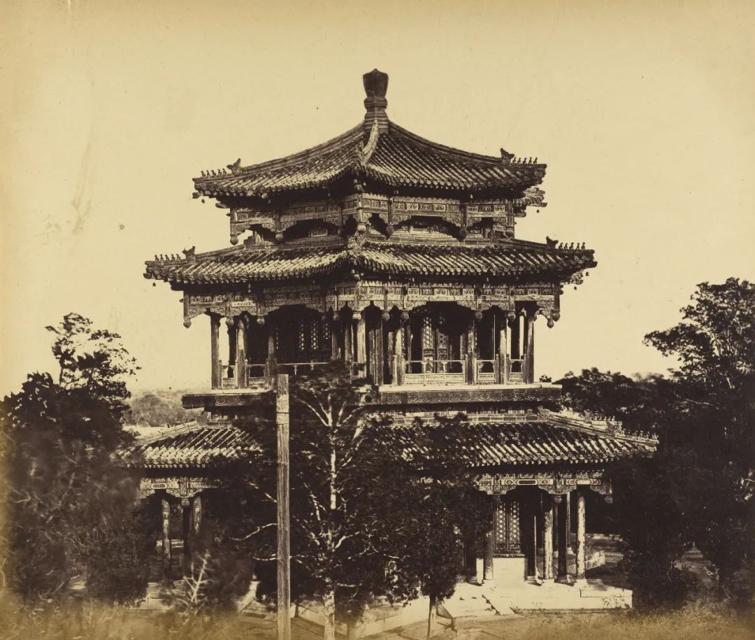 圆明园,这一融汇中外建筑艺术精华的万园之园,同样遭到了英法联军的洗劫。侵略者也不得不承认,“我们就这样以最野蛮的方式,摧毁了世界上最宝贵的财富……你想象不到这座宫殿有多么华美壮丽,更不能设想法军、英军把这个地方蹂躏成什么样子”。圆明园被焚毁的时间是在1860年10月18日至20日,侵略者发动了三四千士兵分头焚烧,大火燃烧了整整3天,遮天蔽日的黑色浓烟长久地笼罩在整个北京城的上空。而比托恰恰是在10月18日圆明园被焚之前拍摄了极其珍贵的皇家园林照片。