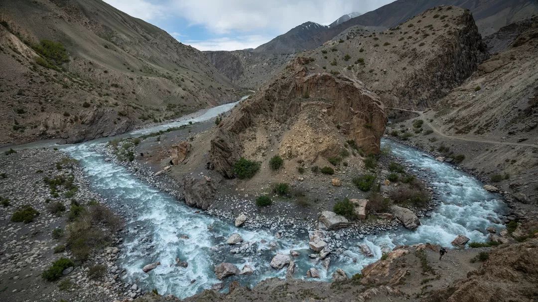 这段路是苏联入侵阿富汗时为方便调拨军队修建的。随着岁月的流逝,现在也只剩下一些模糊的痕迹,山顶的积雪融化成小股的水流,急急地汇入“母亲河” 阿姆河中,频频冲刷,甚至淹没路面。