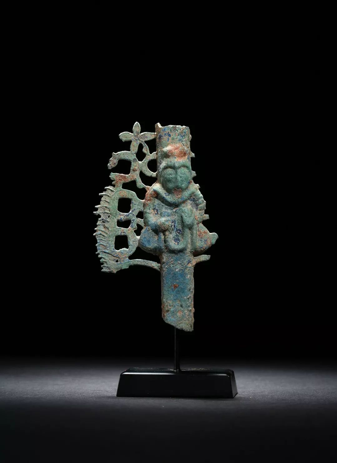 ▲大日如来,即毗卢遮那,意为照耀,是光明遍照的意思,东晋佛陀跋陀罗《六十华严》译为卢舍那。青铜造佛坐像,宝珠状肉髻低平,奇特的是肉髻顶部向上伸出两片叶状物。佛祖双臂上举,腕部戴镯,双手手指于头顶上部连接,结跏趺坐。这类形制的佛像十分少见。元明清时期,佛教造像的形态向着官方和民间两个不同方向发展。官方因统治的需要崇奉西天梵相的藏传佛教造像;民间膜拜汉传佛教造像,并依照宋代的样式造像。但由于思想的钳制和文人地位的下降,民间想象力和创造力大不如宋,造像仅仅是膜拜对象,并不追求艺术水平,因此造像艺术大有“今不如昔”之慨。值得一提的是,明代还将关公拉入释班,将其作为武财神和伽蓝菩萨供奉,这个传统一直流传至今。