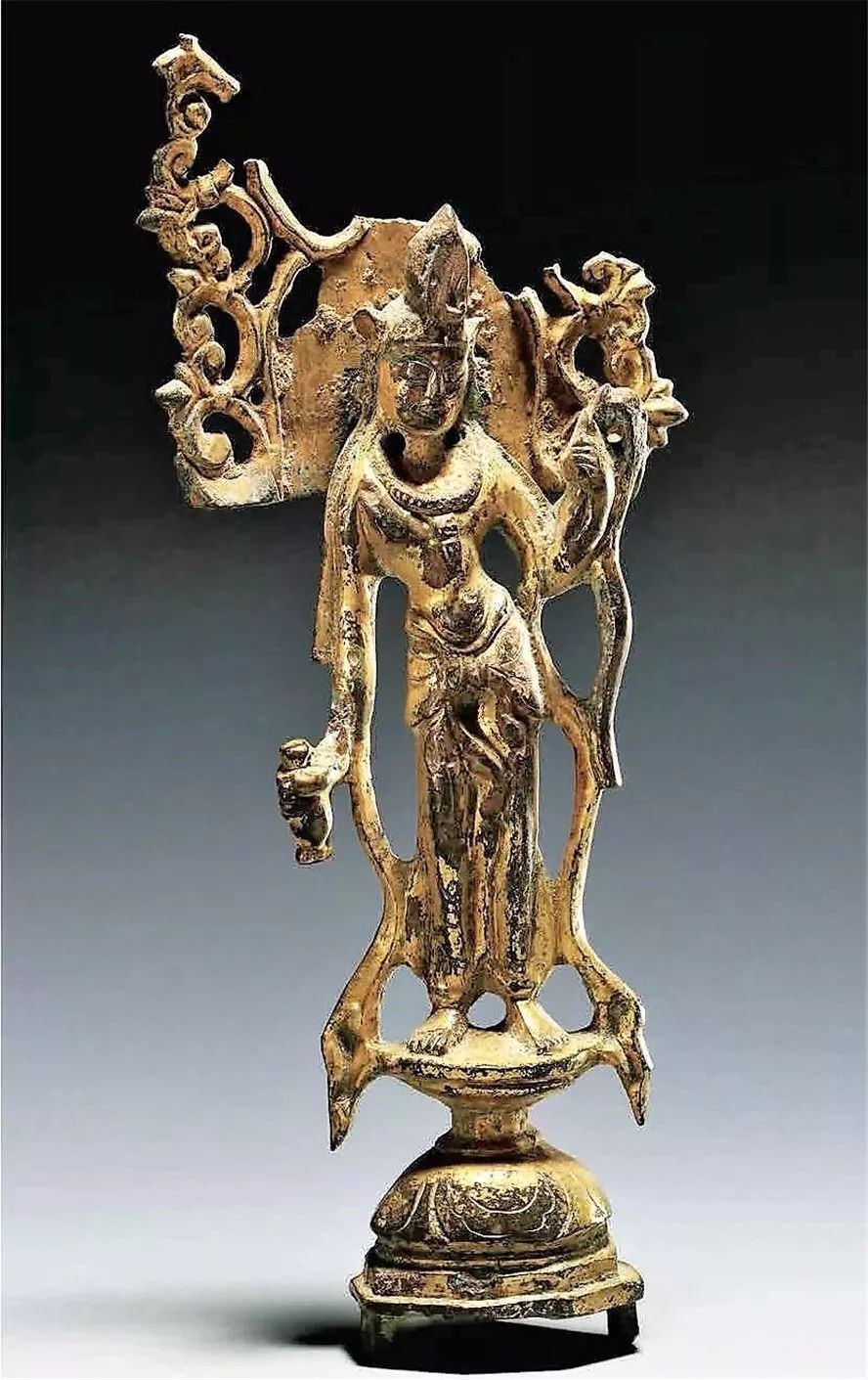 ▲摇钱树是汉代神仙思想的物象反映,其树干上出现佛像,反映了佛教初入中国时仙佛共存的基本面貌,同时亦成为我国金铜佛教造像早期遗物。从两汉到三国西晋,无论是青铜还是陶瓷、石刻的佛教造像,都与神兽、神人并列于同一器物上,被当作一般的神明来奉祀,以中国特有的方式来膜拜。