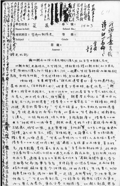 (陈寅恪称赞夏鼐“读史细心”的作业)