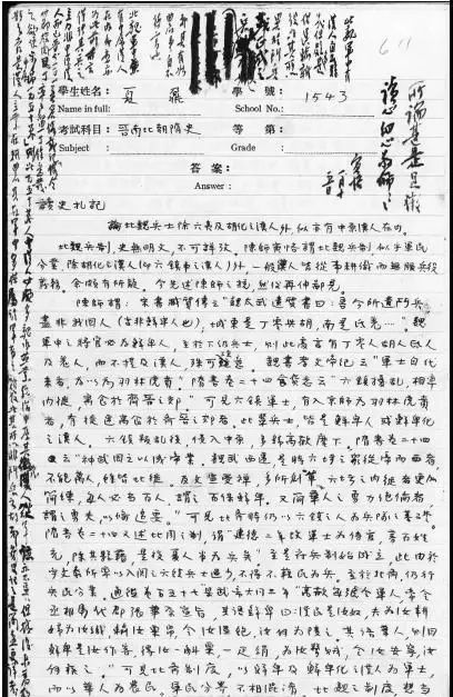 (陈寅恪称赞夏鼐“读史细心”的作业)