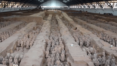 公元前221年,“统一六国”功业基本完成。但陵寝的营建工程却前后历时近40年,到嬴政驾崩、秦二世继位还未完成,最终被战乱所中断。
