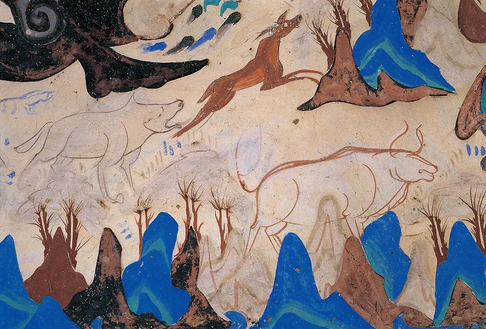 作为温顺家牛的“前辈”,野牛的强壮勇猛和速度超群震撼人心。在莫高窟第249窟窟顶就存有距今一千四百多年的两头野牛形象。