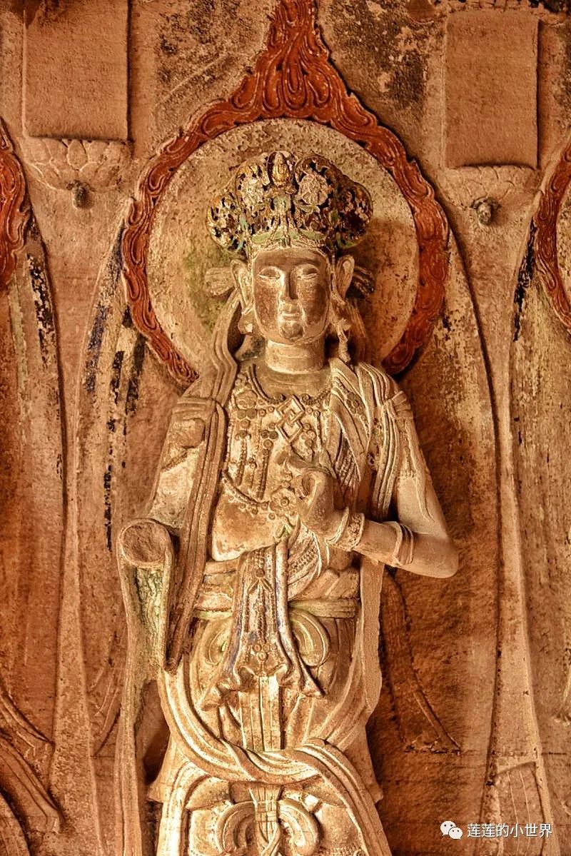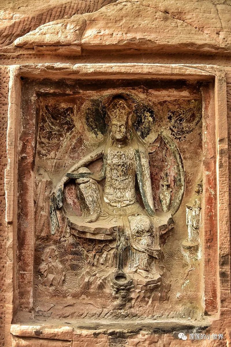 第4龛是水月观音龛,主尊是观音,随意坐于石座上,遍身璎珞。