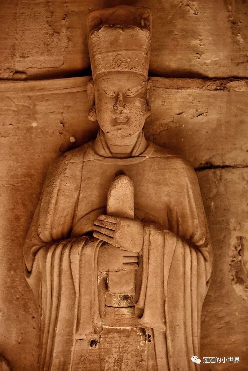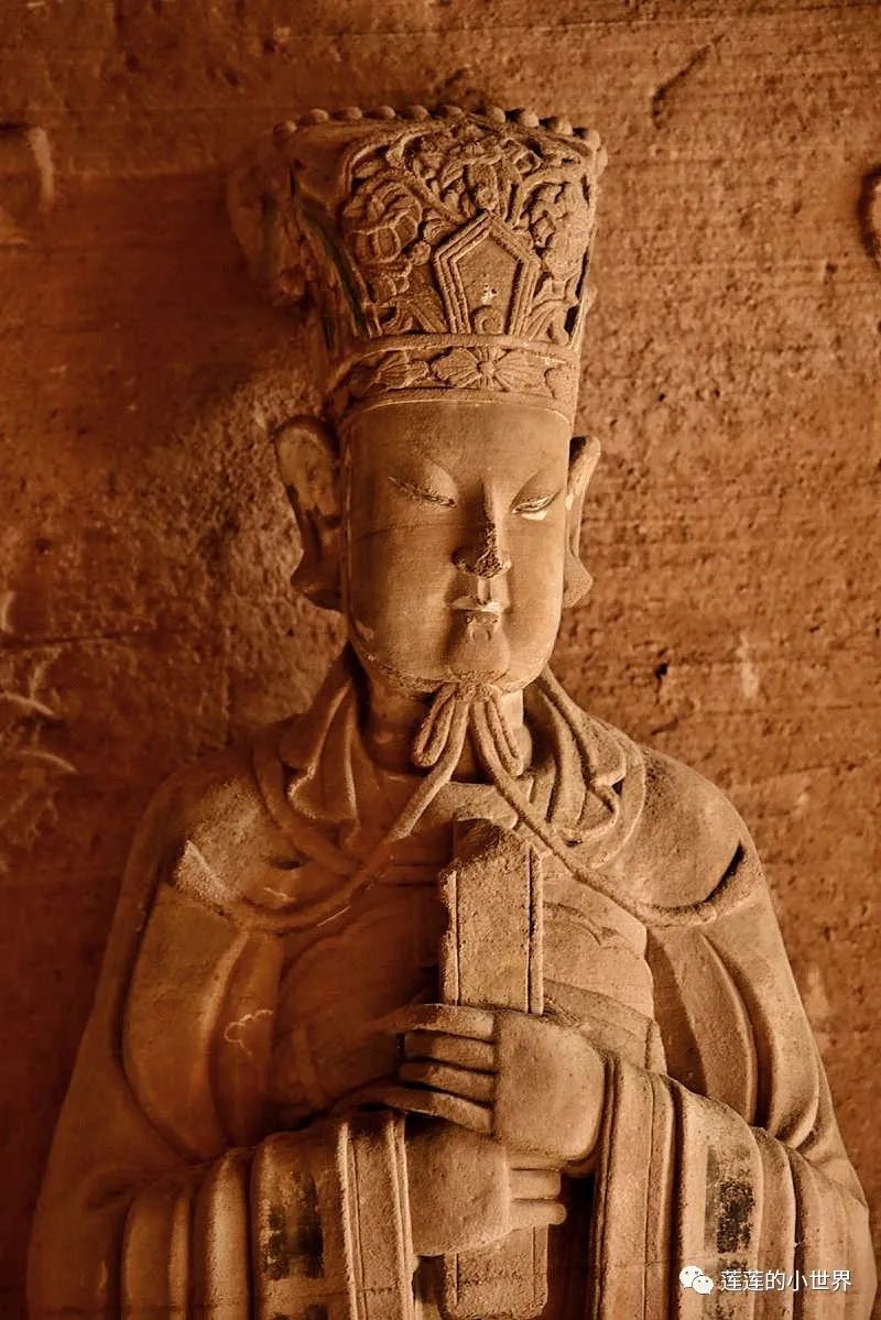 第10龛是石门山最精彩洞窟之二,也是本人最最喜欢的三皇洞,主像为三皇,天皇居中,地皇及人皇居其两侧,有记载此洞窟在清乾隆六十年坍塌过一次,所以窟顶部及右壁的造像大部分不存。左壁造像分上下两层,上层是二十八位天人像,下层是六尊文官立像,非常帅,他们是此窟的精华。