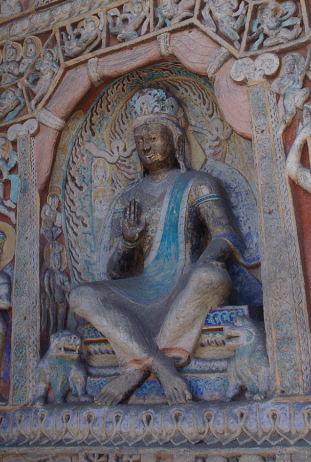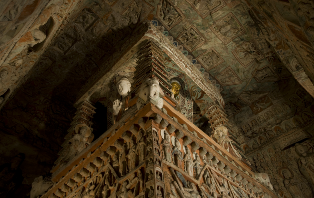 ▲(图4)第11窟东壁交脚弥勒宝冠
