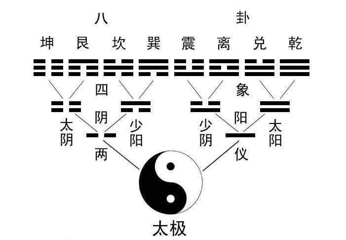 又如密宗认为,宇宙的来源和生命一样,是由雌雄交合而成的。这一点上就受到道教太极生两仪的阴阳学说的影响。所谓:“无极生太极,太极生两仪,两仪生四象,四象生八卦”,太极阴阳二气和合而生万物。