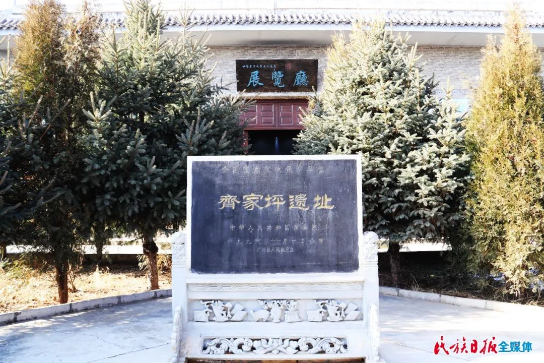 齐家坪遗址位于甘肃省广河县齐家镇(原排子坪乡)园子坪村齐家坪社,地处洮河西岸第二台地上。遗址东临洮河,西傍山岭,是一处缓坡台地,台地与洮河面高差约100米。整个台地东西长约1000米,南北宽约500米,分布面积500000平方米,遗址所处地势西北高,东南低,南北各有一深沟,将遗址与其它台地相分开。台地中间有一条呈东北—西南向的深沟将台地的绝大部分切割为两半。齐家坪自然村落主要分布在深沟以北,台地范围内除村落外,其余为大片的农田。自上世纪20年代以来,文物考古工作者在对齐家坪遗址的历次考古考古调查中,在齐家坪许多断崖和沟坎上发现了暴露有大量远古人类遗留下来的灰坑、窖穴、白灰居住面和灰层等文化层,这些文化层厚约0.5~2米不等,文化层中还夹杂有许多破碎的陶片,其中以泥质红陶、夹砂粗陶片最为常见,彩陶片很少见到,可辨陶器器物大部为侈口垂腹罐、双耳罐、双耳高颈瓶,并有少量的素陶盆、折唇尊和壶形器等。陶片绝大多数都为素面,少部分有纹饰,一般为竖绳纹和篮纹。同时在台地上散布有原始先民曾经使用过的石器和骨器残件等遗弃物,石器表面绝大多数都经过磨制,器类有斧、刀、锛、凿、壁、环等,制作较为精细,骨器常见有锥、针、刀等。从历次考古调查、勘探和发掘情况分析,该遗址是一处典型的齐家文化大型聚落和墓葬的遗址,文化内涵丰富。1963年2月齐家坪遗址被甘肃省人民政府公布为甘肃省级文物保护单位,1996年11月由国务院公布为全国重点文物保护单位。