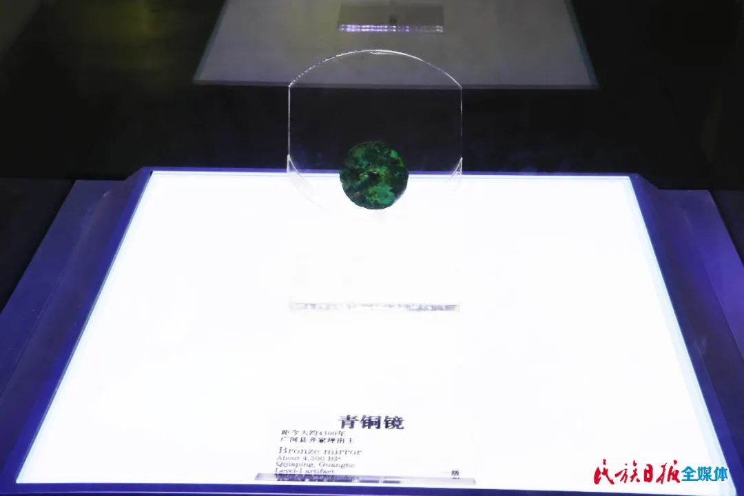 齐家坪遗址不但有丰富的文化遗迹和出土数量众多的遗物,该遗址先后出土了石器、陶器、骨器、玉器等生产工具和生活用具等几千件遗物,而且也十分著名,其中出土的一面铜镜,为中国迄今为止年代发现的年代最为久远的铜镜,被美誉为“中华第一镜”。1975年,甘肃省博物馆文物工作队在对齐家坪遗址41号墓葬的发掘中,考古人员发掘出一面铜镜,该铜镜形状呈扁平圆形,直径6.2厘米,厚0.3厘米,镜面光素无饰,背面中央有一桥形钮,钮高0.5厘米。从该铜镜铸造工艺来看,属于一次范模浇铸成型,钮部有锻饰痕迹,边缘规整光滑,器物通体有锈蚀斑迹,现收藏于甘肃省考古研究所,这面铜镜虽然在黄土地里埋藏了四千年的时光,但依旧不能磨灭它过去的辉煌,虽然已经不能照耀出我们的模样,但是通过镜面我们看到的是勤奋努力,光彩夺目的辉煌往事,中华文化因为勤奋和智慧而得以在世界上占据一席之地。这面铜镜的出土,说明原始社会后期的齐家文化已有铜镜出现,在铜镜发展史上具有重要意义。