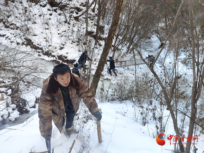 石窟寺田野调查正值凛冬时节。庄浪县关山林区,平均海拔2500米左右,处于高寒地带。林区内冰雪短期难以消融,走起路来冰倒雪滑,时不时跌跤。通往石窟寺的道路窄小又崎岖,行走起来非常艰难。前往蛇头寺石窟必经的一条羊肠小道,是借助石崖开凿出来的,路面宽度仅有30厘米,小路外侧是高约100米的悬崖。向崖底望去,让人胆战心惊。队员们背靠着小路里侧的崖体,寸步行进到达石窟寺。