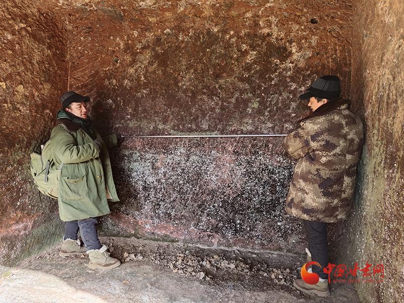 去年冬天,天气格外严寒,有时气温低至零下摄氏18度。戴上手套绘图,手指不灵活,绘制的图案不精美,调查队员刘继涛只好脱下手套绘图。他在保温杯里倒满开水,手指绘图冻麻木了,他就握着保温杯暖一暖手指,随后继续绘图。