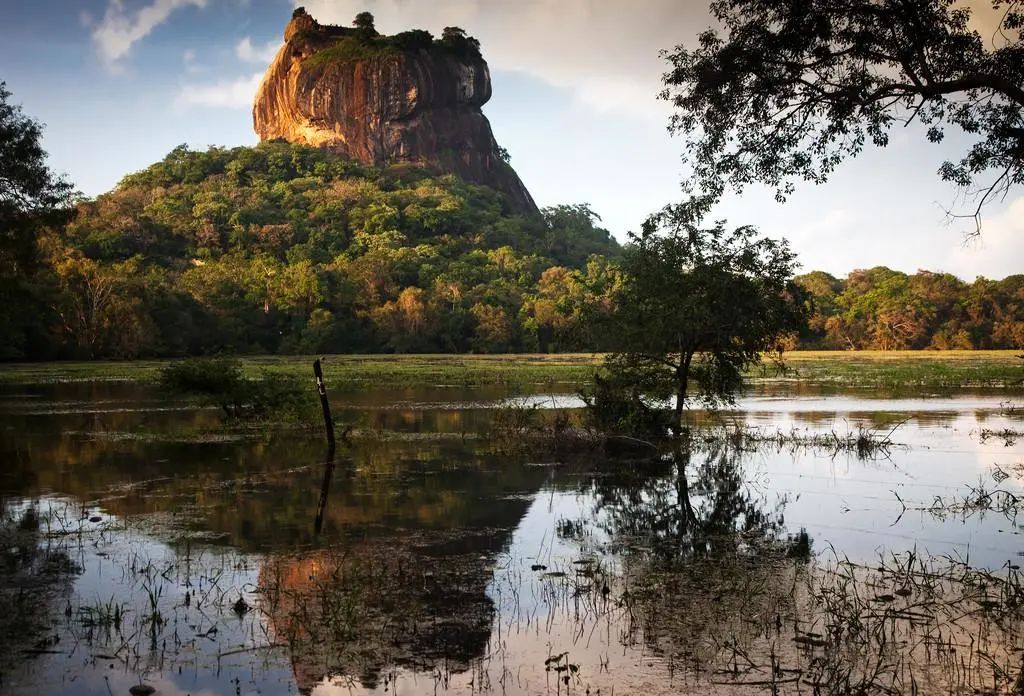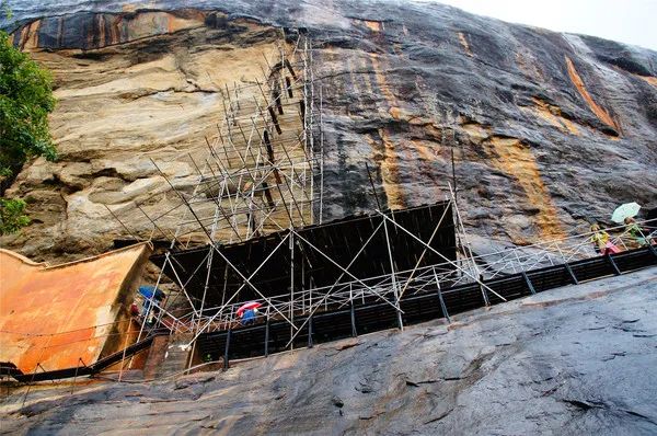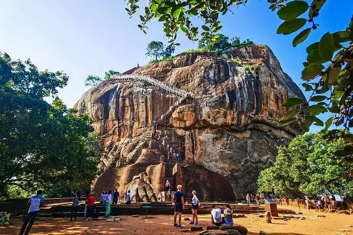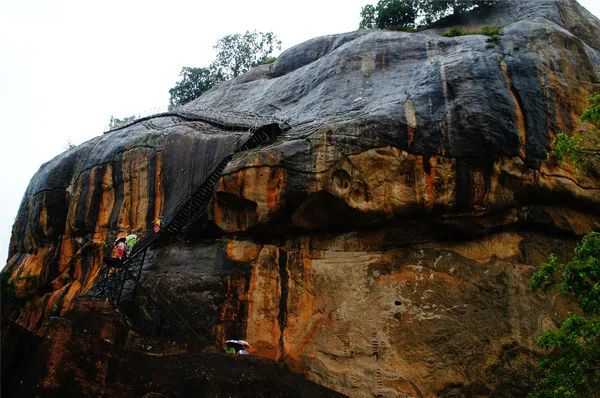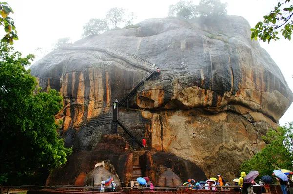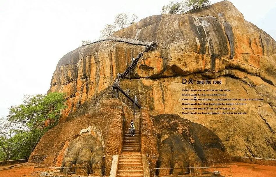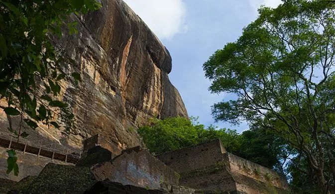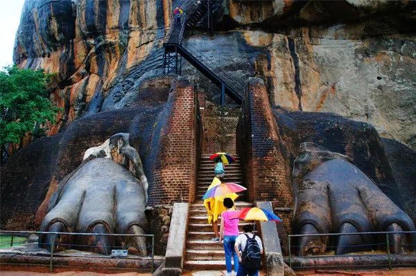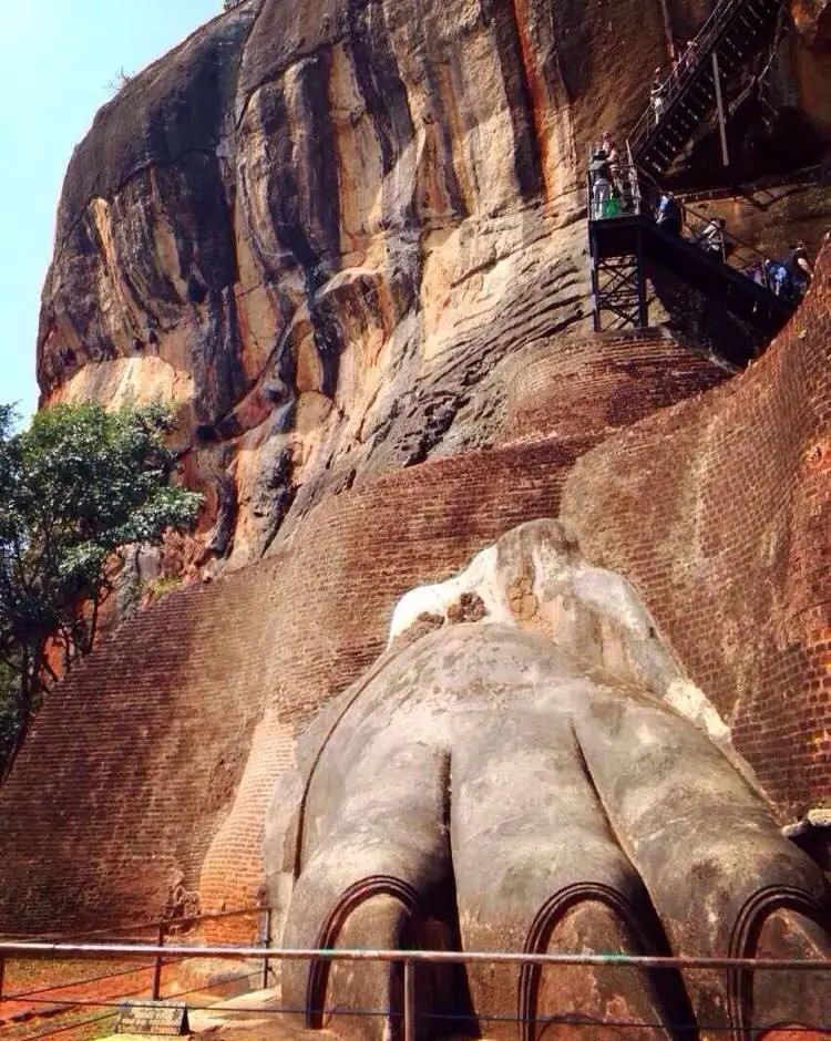 壮观的狮子岩形成于古老的火山栓,高出海平面370米,遗世独立于斯里兰卡方圆百里的中央平原,守望着莽莽丛林大地。这里自古是佛教僧侣进行苦修的地方。在5世纪后半叶,Kasyapa的新国王弑父登基,驱逐兄长,为了逃避同父异母的弟弟复仇,他把修行者赶到了对面的山头,独占了这个地方,在陡峭的岩石上修建了这座易守难攻、动人心魄的宫殿与空中花园。然而仅仅在这里统治11年后,追寻至此的弟弟蓄势待发,双方展开殊死一战。用不人道方式夺来的名与利,最终逃不过宿命。曾经的天空之城,从此被埋没在绿色丛林中,好几个世纪。直到19世纪中,这里被英国猎人贝尔再次发现时,狮头已经风化掉落,只剩下孤伶伶的狮身,成为了白鹭、长尾叶猴、斯里兰卡猕猴的乐土。