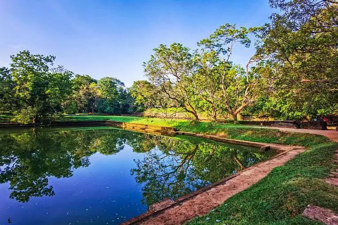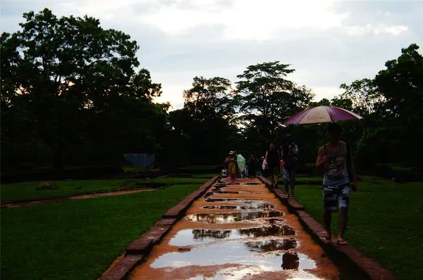 锡吉里耶古城的历史可以追溯到7000年前的远古时代。从公元前3世纪起,这里成了位于山间的修道院,里面建有佛教皈依者捐赠的精致山洞。公元477—495年,修道院又建起了城市花园和宫殿,在这之后一直到14世纪,这里都是僧侣们的生活起居之地。其东西长3公里,南北宽1公里,将公元5世纪斯里兰卡伟大而精妙的城市规划表露无遗。一条护城河穿过西边城区的入口,它与远处的山峰恰好成一直线。城门用木材和砖石精制而成,顶上呈平铺状。城内花园的南半部分业已出土,构造相同的北半部分还有待于今天的考古学家去发掘。西城的水上公园布局十分对称,展现了远古时期以来世界上最精巧的水压技术。它利用微水利学相互联络的原理,不仅满足了家庭园艺和农业生产的需要,而且在表层排水、防止腐蚀、水道的装饰性和娱乐性、保护设施及系统制冷方面有独到之处。西城内墙里的小型水上公园,由水榭、池塘、蓄水池、庭院、喷泉和水道构成。清澈见底的河水在鹅卵石或大理石上缓缓流动,不仅是实用的制冷设施,更带给人美好的视听享受。游客们只要在此驻足片刻,便会注意到河流的存在。最大的水上公园内有一个四面环水的岛屿,它与主城有水路相通,这里的历史比柬埔寨古都吴哥和印度莫卧尔帝国时期的花园还要早上5个世纪。中央岛屿上矗立着一个巨大的亭阁;四个L形池塘里的水在不同的水深处都有水管相通,以控制不同的水位。西南方向的池塘里建有一个大型游泳池,你可以在用木材搭建的隧道中拾级而入。另一个较小的池塘中央坐落着一块磐石,上面耸立着一个砖制的小亭子。喷泉公园看上去十分狭长,蜿蜒的小溪潺潺流动,直到没入西半部两个深长的池塘内。喷泉就建在小溪上,常年喷涌不止。喷泉的另一侧是四个南北走向的大型岛屿,将水上公园的中轴线拦腰截断。石林公园比那以对称为美的水上公园的海拔要高,是一种完全相异的建筑式样,它融合了许多非对称的概念,弯曲的小路和不经雕饰的巨石便是这一设计思想的典型代表。石林公园里几乎每一块岩石上都有一个砖石或木材制成的建筑物,花岗岩建成的大型蓄水池就在这个公园里。最近在锡吉里耶古城出土了数件微缩的赤陶雕像,它们是仿造锡吉里耶石墙上的绘画制成的精美工艺品。本打算将它们出售给来锡吉里耶的游客作为纪念,现其中的一部分正陈列在锡吉里耶博物馆展出。