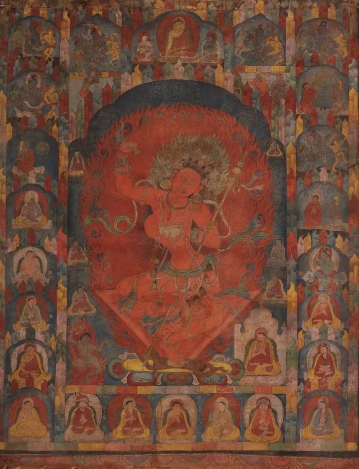 本期分享的古代唐卡珍品,在时间上,囊括了吐蕃分治时期、元代、明代和清代四个不同的时期;在地域上,有西藏中部、西藏西部、西藏东部、北京、蒙古和不丹等各个地域;在风格上,有帕拉风格、尼泊尔风格、克什米尔风格、西夏风格、达隆风格、萨迦风格、俄尔风格、藏西风格、旧勉塘风格、新勉塘风格、旧钦孜风格、新钦孜风格、旧噶玛噶智风格、新噶玛噶智风格、却英多杰风格、八蚌风格、郎卡杰风格、不分教派运动风格、明代宫廷风格、清代宫廷风格、蒙古风格等各种风格;在题材上,有藏传佛教崇奉的上师、本尊、佛、菩萨、佛母、罗汉、护法神等各类尊神;在形式上,有彩唐、黑唐、金唐、红唐等不同种类。从整体上看,可谓时间跨度长、地域分布广、题材众多、内容丰富、形式多样、流派纷呈,足以全面展现古代唐卡艺术发展演变的历史轨迹、艺术风貌和风格特点。