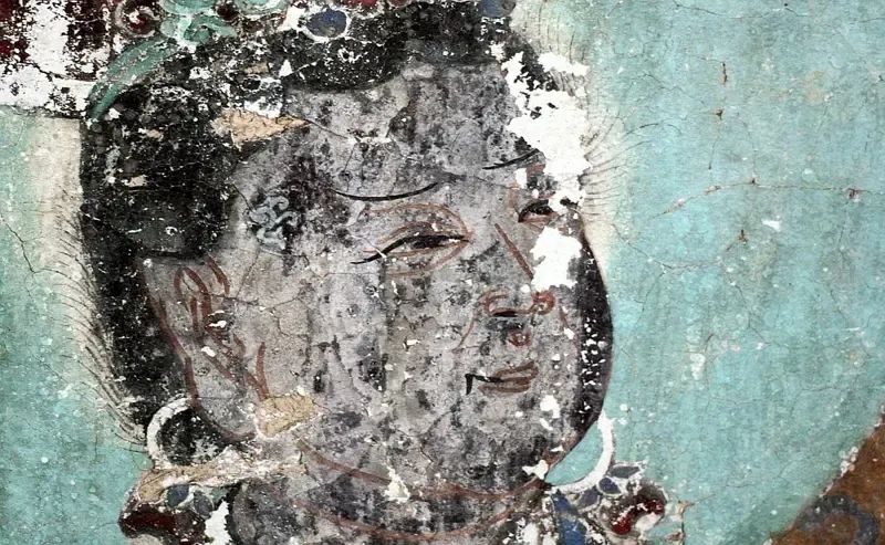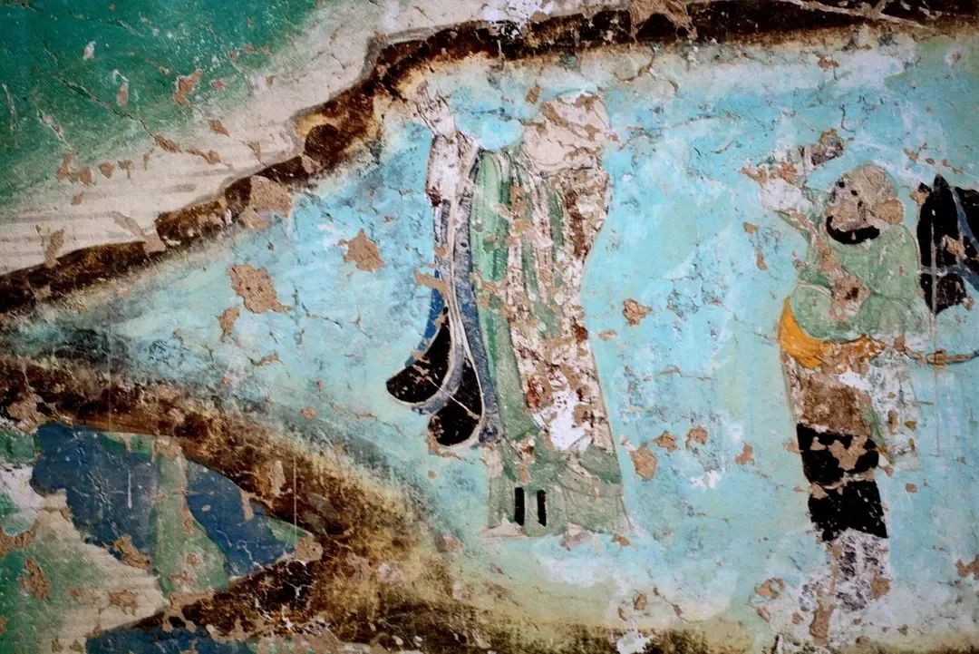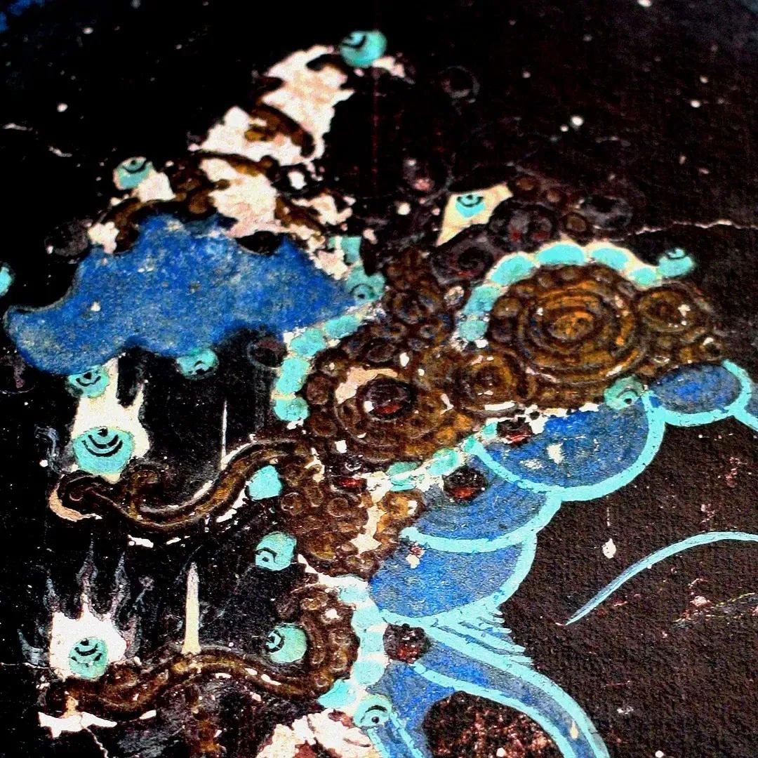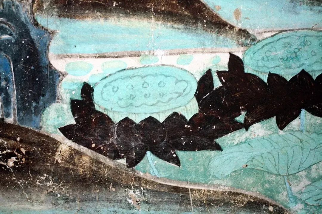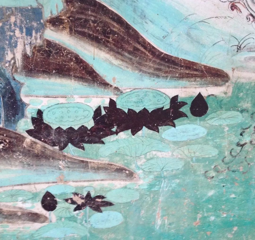 这幅西夏时期水月观音十分经典:画面上南海茫茫,景色寥廓,整个画面以石绿、墨绿为主体色彩,颜料据说是用蓝、绿宝石研制而成,历经千年而颜色不改,且随着时间流逝而愈发鲜艳。线条流畅,人物情态逼真。