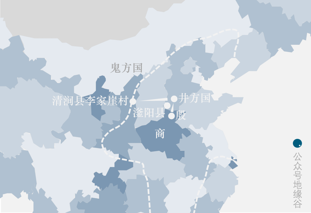 古人们看到了“荆”字就不由自主想到南方的荆楚,就有人认为鬼方是在荆楚之南,实则不然。金文中的“荆”通“井”,武丁时期恰好有一名为“井方”的方国,位于现在河北的邢台,是向商朝称臣的友邦。这样,武丁伐鬼方的路线就清晰了:从殷都(今河南安阳)北上至井方,然后向西进攻鬼方。
