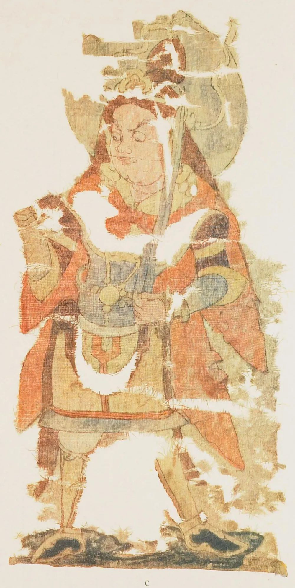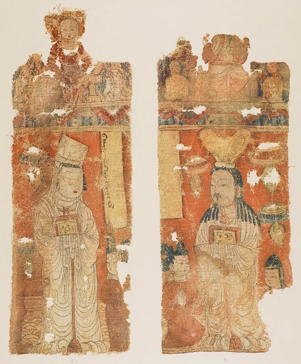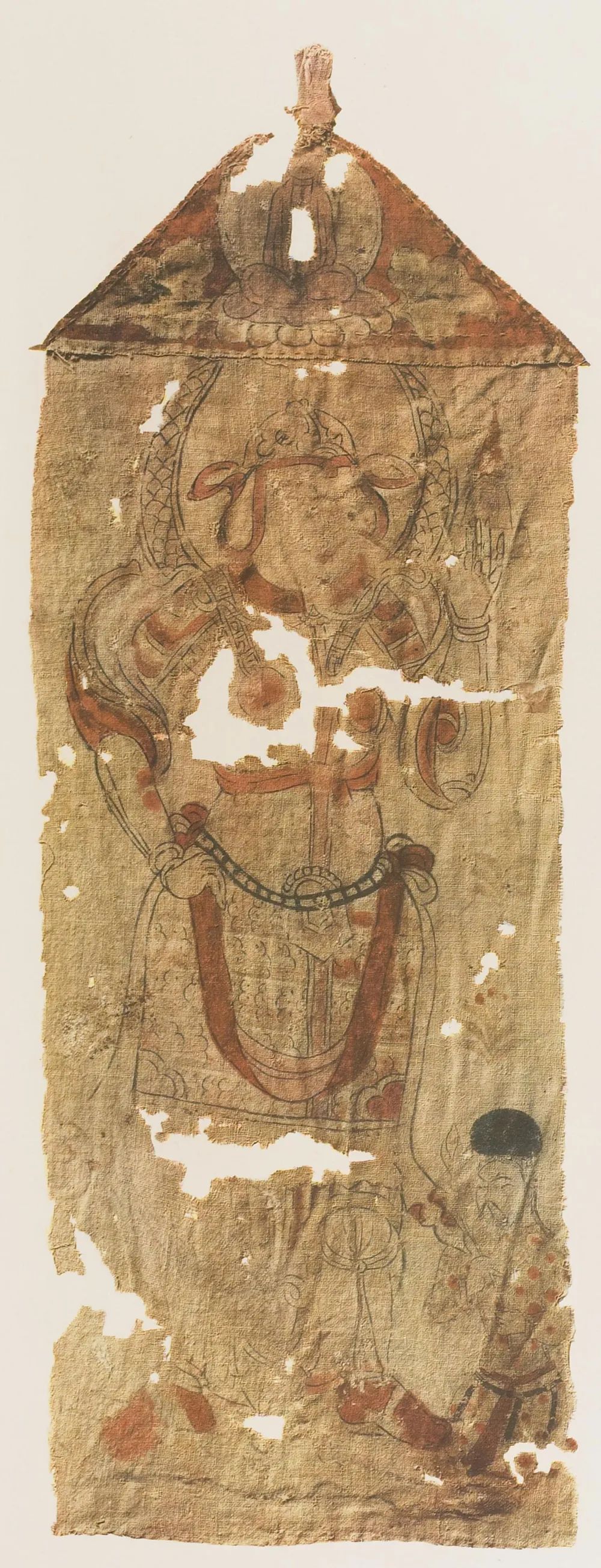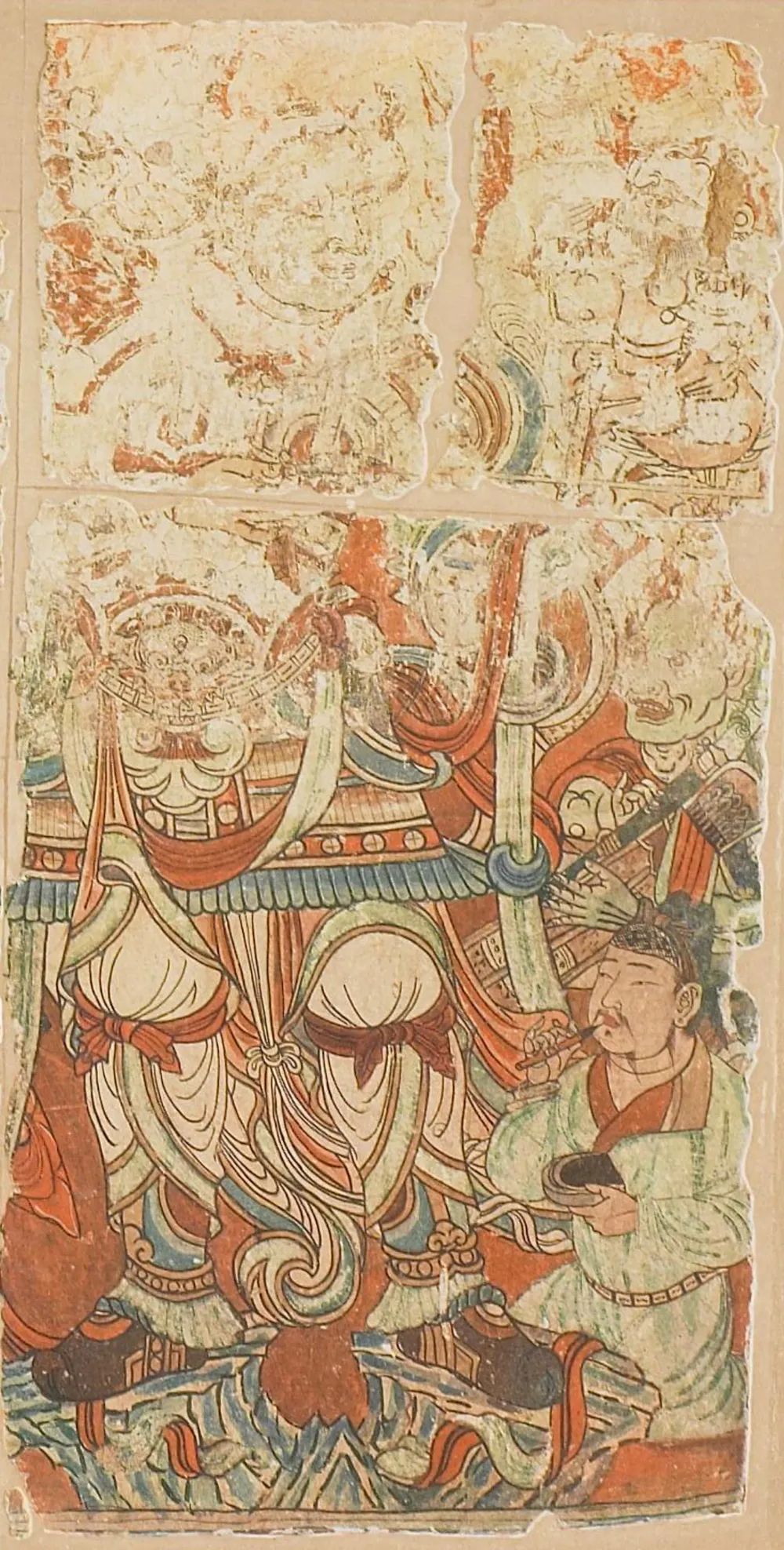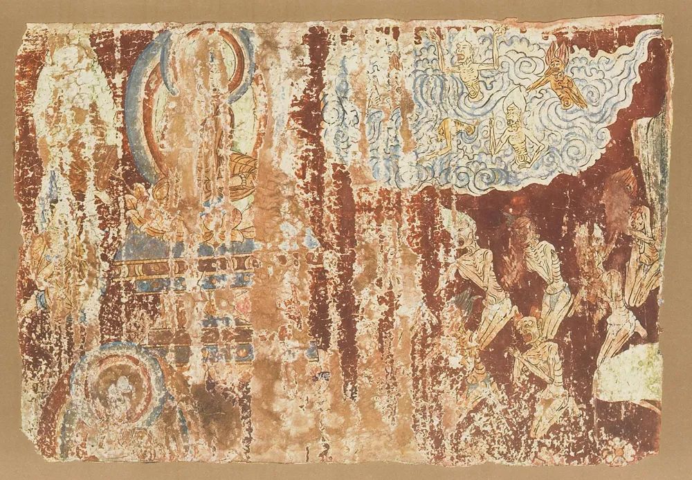 二战结束以后,德国在美苏大国意志的主宰下,被分裂成了东西两部分。由于原柏林民俗学博物馆为防止馆藏吐鲁番文献文物被毁于战火,将文物转移多处分藏,所以,除了战火毁坏和苏联拿去的部分以外,二战后,文物也被分藏在了东西德。就这样东藏西藏,德国的西域文物究竟流失了多少,毁坏了多少,目前还留存多少,一切都成为历史之谜,就是这幅飞天壁画现在是否存在或收藏在哪里也不得而知,我们仅能从德国阿尔伯特·冯·勒柯于1926年出版的《中亚佛教古代后期》第五卷插图中以饱眼福,实在令人扼腕叹息。