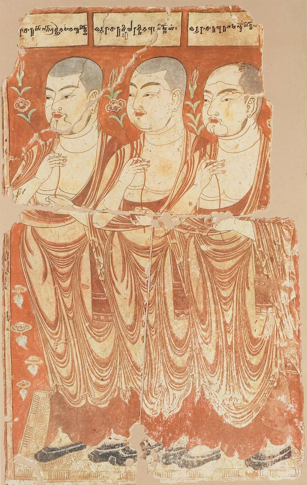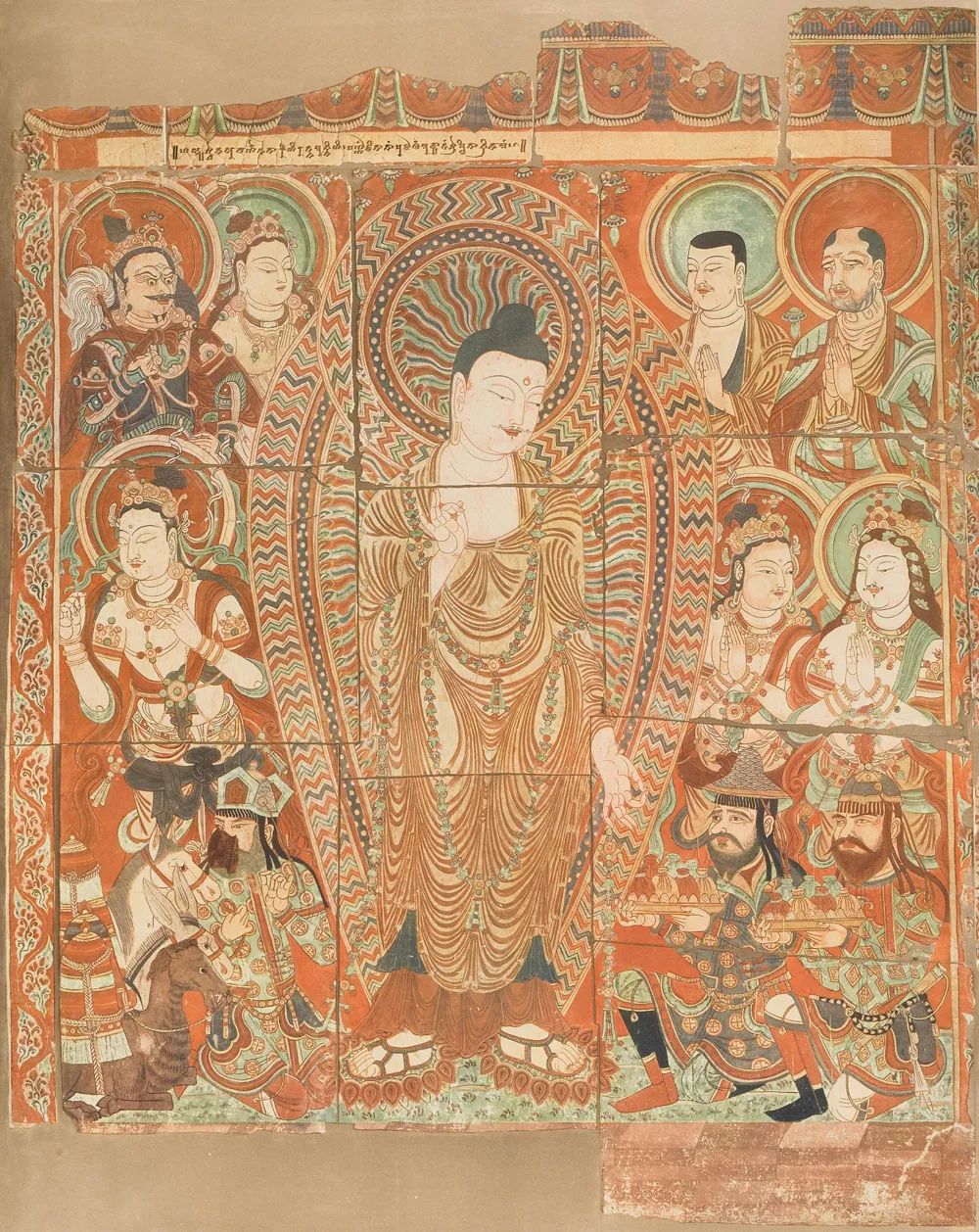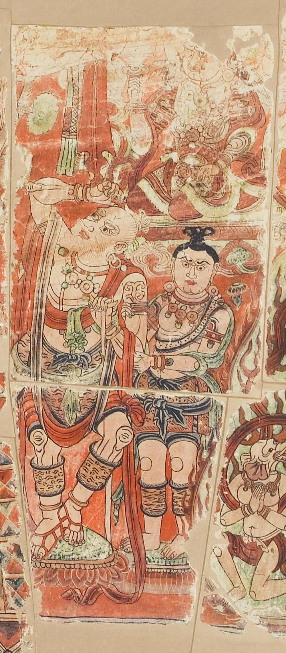 需要说明的是,“吐鲁番藏品”中的大部分并非来自吐鲁番,而来自相距遥远的新疆库车(古龟兹国所在地),其中又以今天库车县城西70公里外克孜尔石窟壁画最为重要。目前,位于柏林西郊的亚洲艺术博物馆正在举办名为“格伦威德尔的足迹——修复后的中国新疆石窟壁画展”的特展,主题就是克孜尔第8窟(又名“十六佩剑者窟”)壁画的复原和研究。壁画中,16位年轻的龟兹贵族身穿华服,腰佩长剑,分左右两列,侍立于佛前,衣着和相貌很像欧洲中世纪的骑士。100多年前,这幅壁画被德国人从克孜尔石窟中剥走运到柏林后,甫一面世就拨动了欧洲人的心弦。