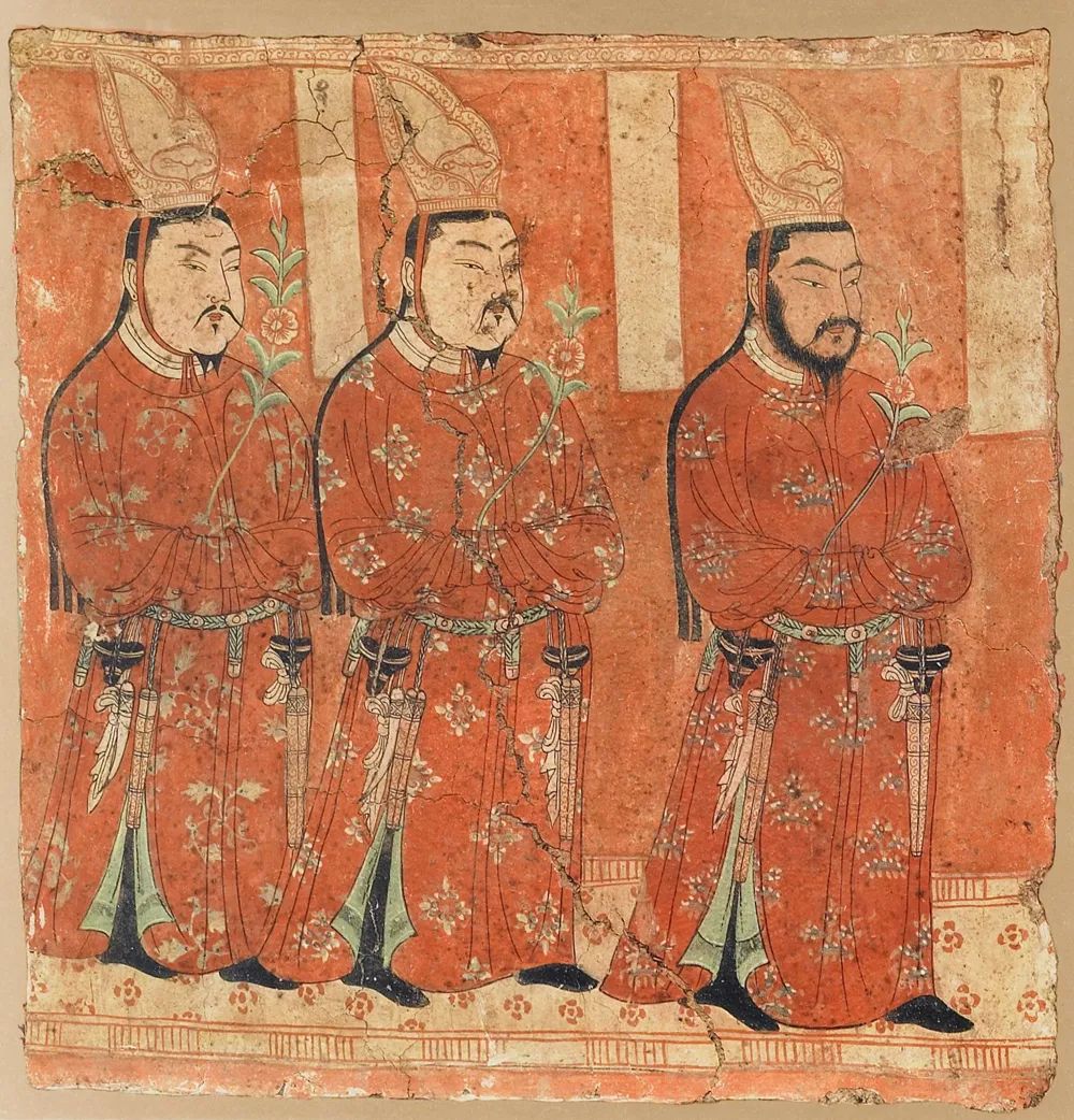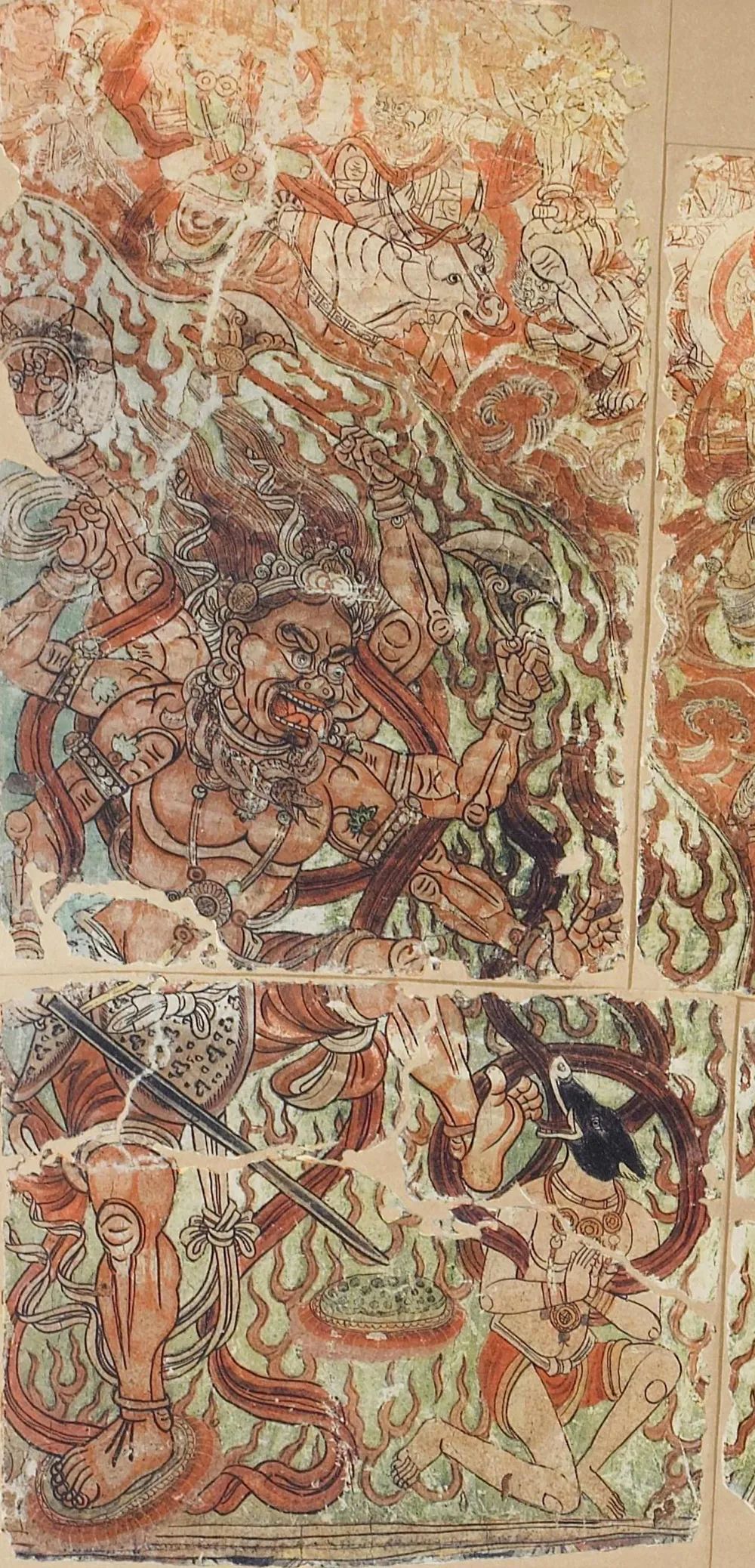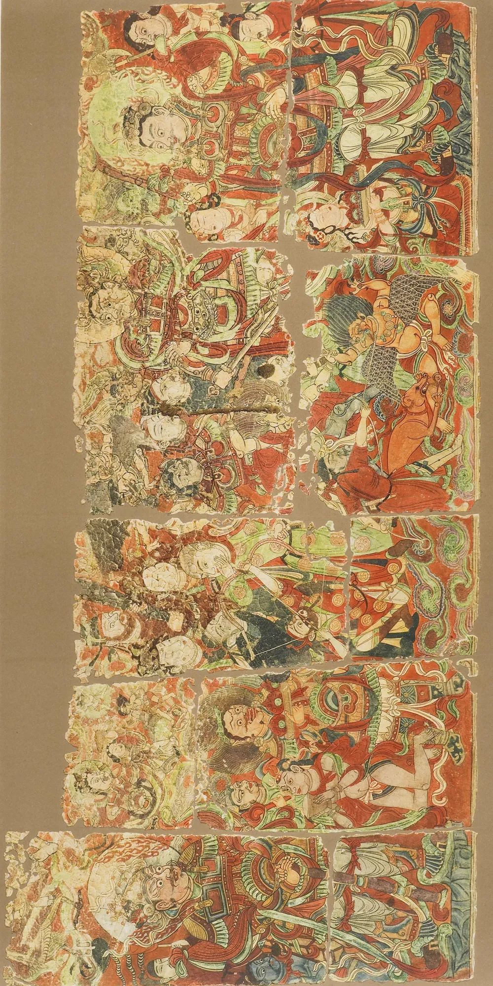 需要说明的是,“吐鲁番藏品”中的大部分并非来自吐鲁番,而来自相距遥远的新疆库车(古龟兹国所在地),其中又以今天库车县城西70公里外克孜尔石窟壁画最为重要。目前,位于柏林西郊的亚洲艺术博物馆正在举办名为“格伦威德尔的足迹——修复后的中国新疆石窟壁画展”的特展,主题就是克孜尔第8窟(又名“十六佩剑者窟”)壁画的复原和研究。壁画中,16位年轻的龟兹贵族身穿华服,腰佩长剑,分左右两列,侍立于佛前,衣着和相貌很像欧洲中世纪的骑士。100多年前,这幅壁画被德国人从克孜尔石窟中剥走运到柏林后,甫一面世就拨动了欧洲人的心弦。