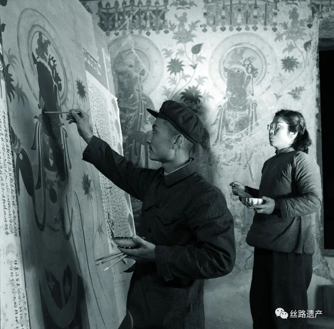 1966年关友惠、欧阳琳在莫高窟第16窟临摹
