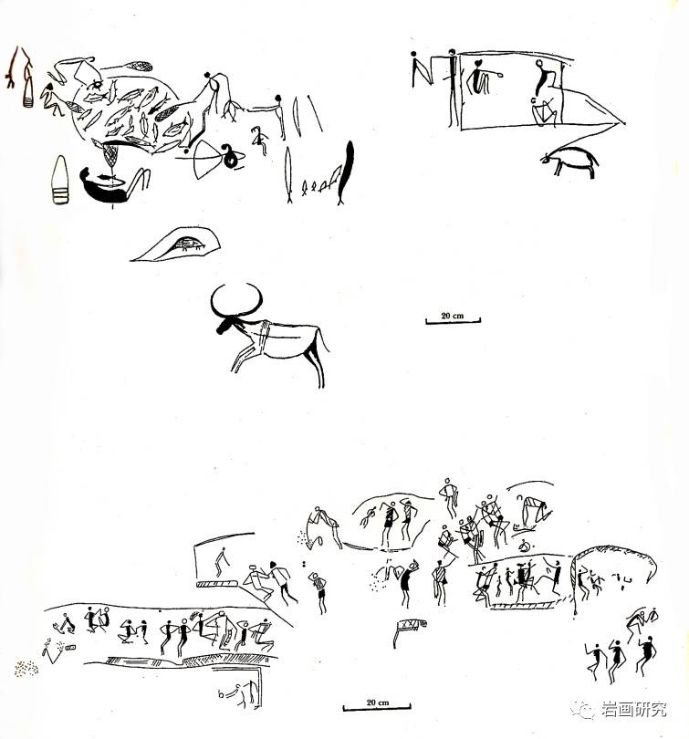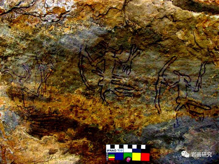 图13 Lakhajoar地区,最早的岩绘画风格,一群绿色舞者