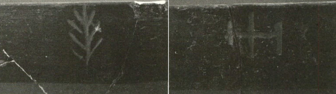 江津白坪崖墓出土的画像石棺保存情况较好,棺身及棺盖均有雕刻图案。棺盖中心雕刻柿蒂纹,四周可见四条长条形装饰,组成画框,整体呈中心对称布局。