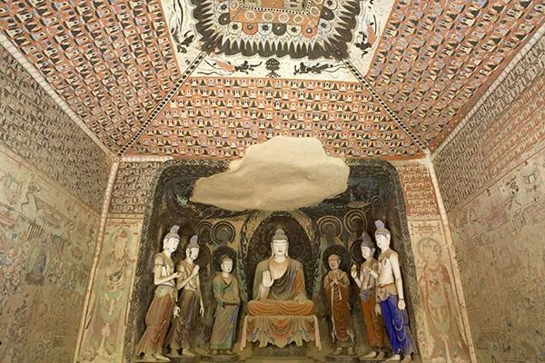 莫高窟第386窟修建于初唐,中唐、五代、清时重修。洞窟形制为覆斗顶形。